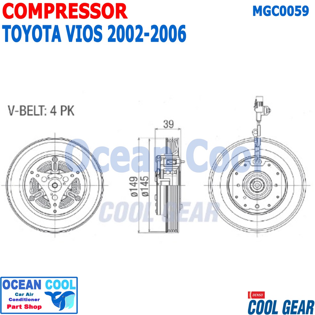 คลัชคอมแอร์ โตโยต้า วีออส 2002 -2006 MGC0059 Cool gear denso เเท้ DI437390-0040 Compressor Clutch TOYOTA VIOS