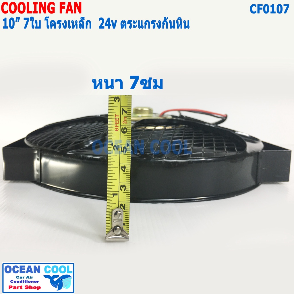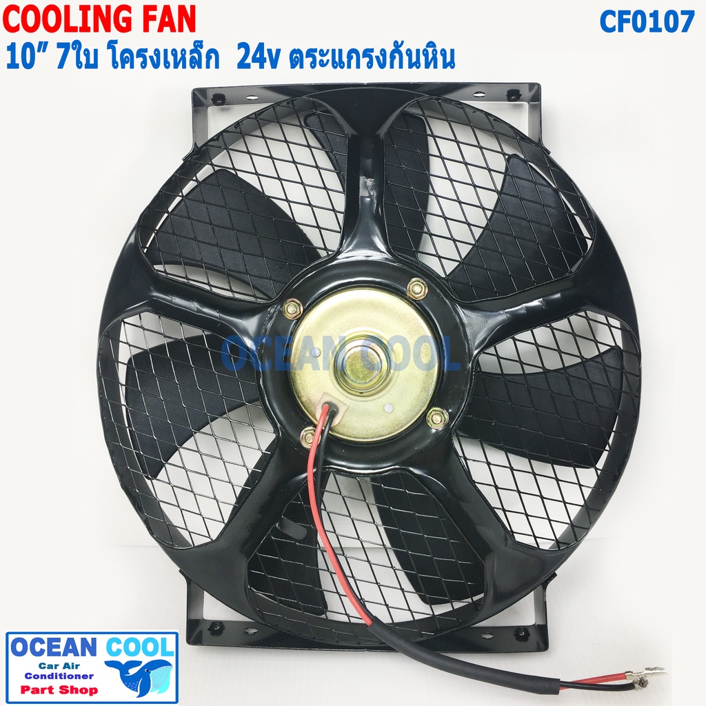 พัดลมไฟฟ้า 10นิ้ว 7ใบ 24V เป่า โครงเหล็ก มีตระแกรงกันหิน CF0107 Cooling Fan 10" 7B 24v พัดลม พัดลมระบายความร้อน