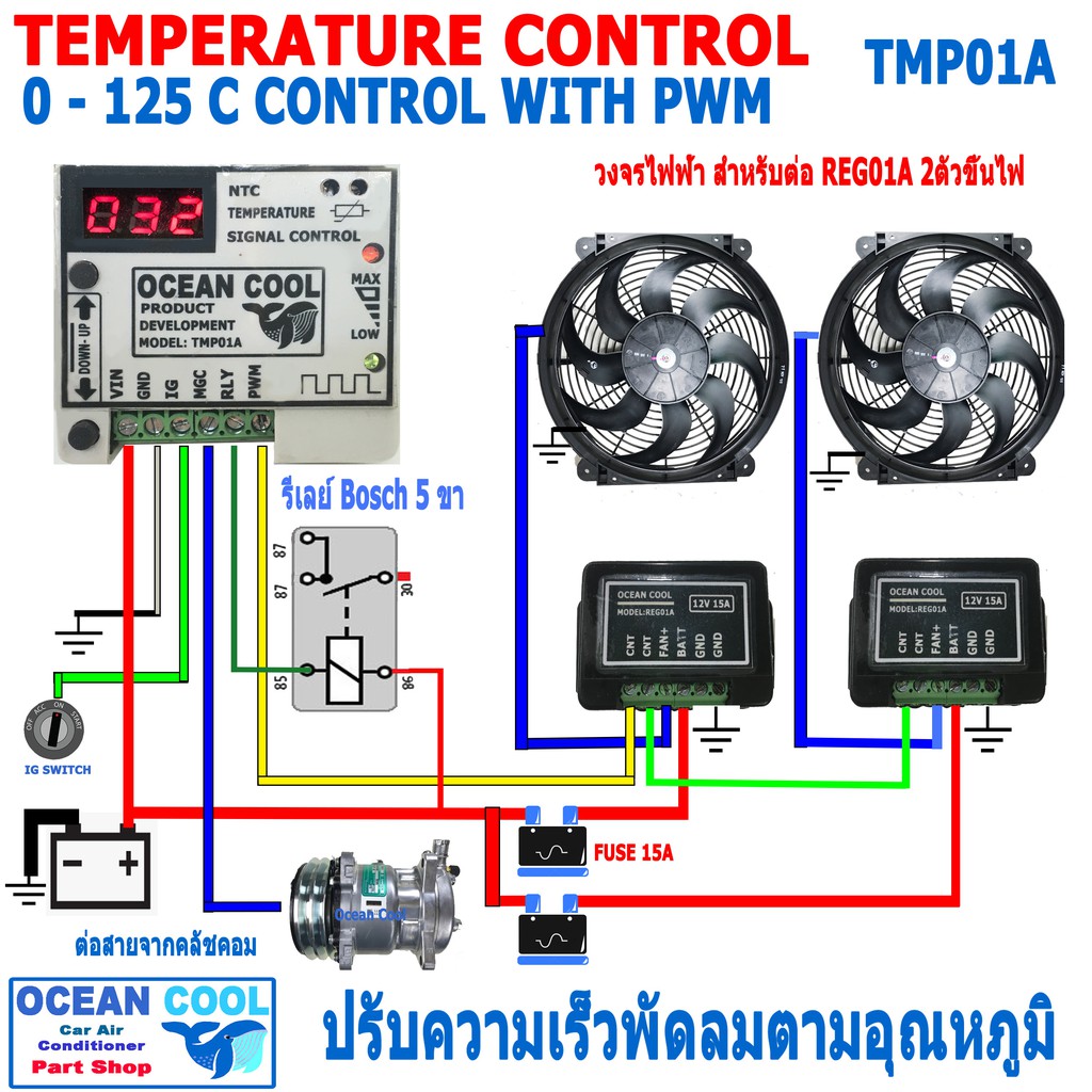 ควบคุมพัดลมไฟฟ้า ปรับความเร็วได้ตามอุณหภูมิที่สูงขึ้น TMP01A อุปกรณ์เสริม สำหรับติดตั้ง พัดลมระบายความร้อน Control