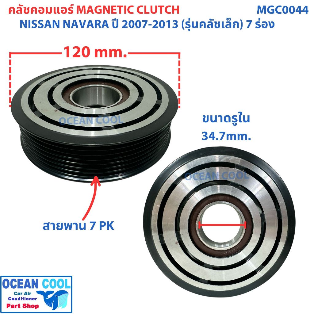 คลัชคอมแอร์ นิสสัน นาวาร่า 2007 - 2013 รุ่นคลัชเล็ก 7 ร่อง MGC0044 ลูกปืน NSK แท้ Magnetic Clutch NISSAN NAVARA หน้าคลัช