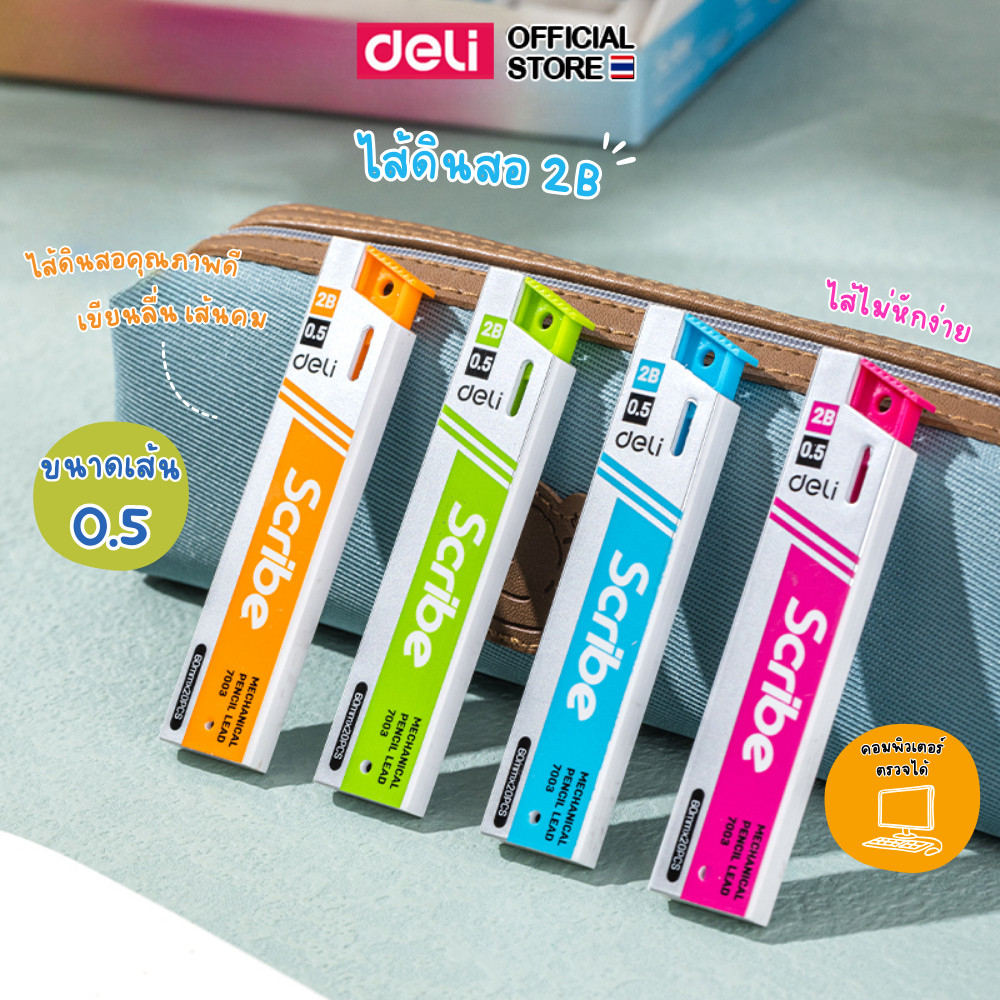 Deli 7003 Mechanical Pencil Lead ไส้ดินสอ 2B ขนาด 0.5 มม. (คละสี 1 ชิ้น)