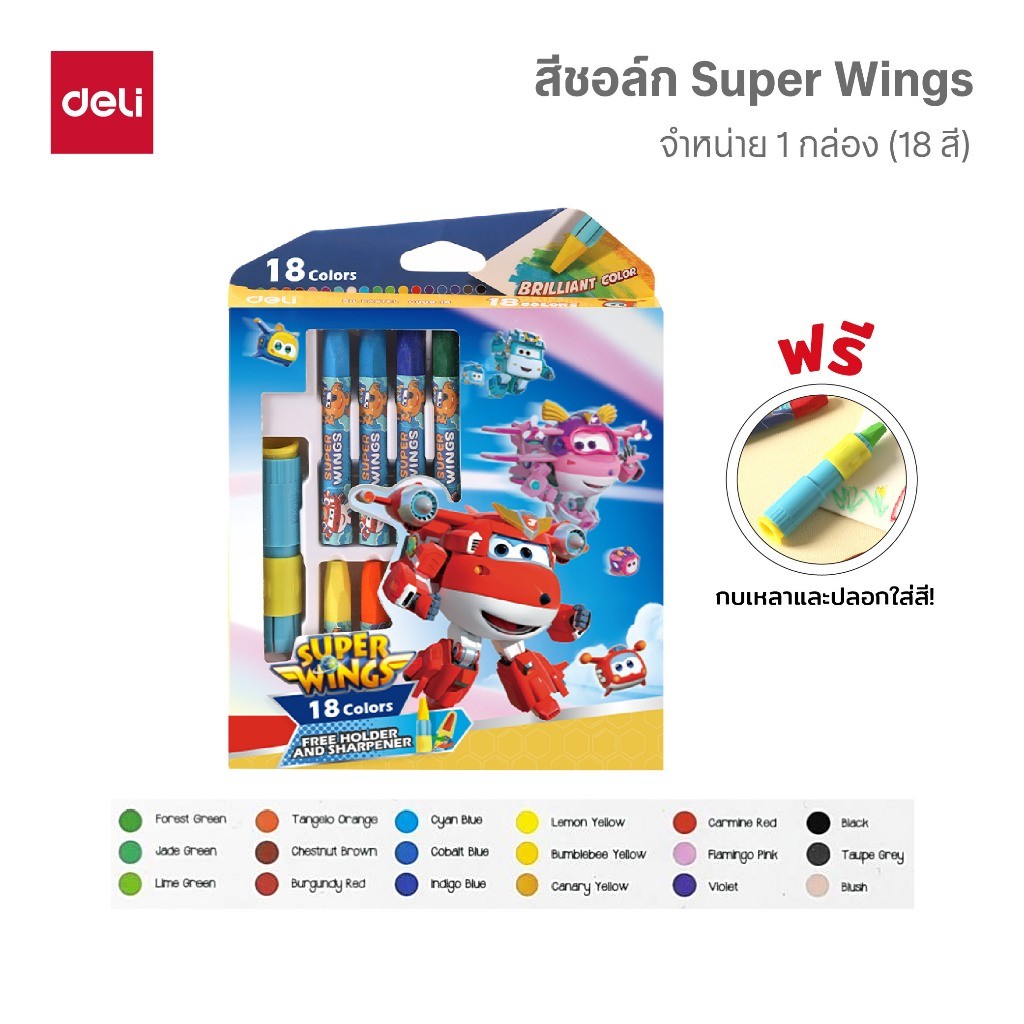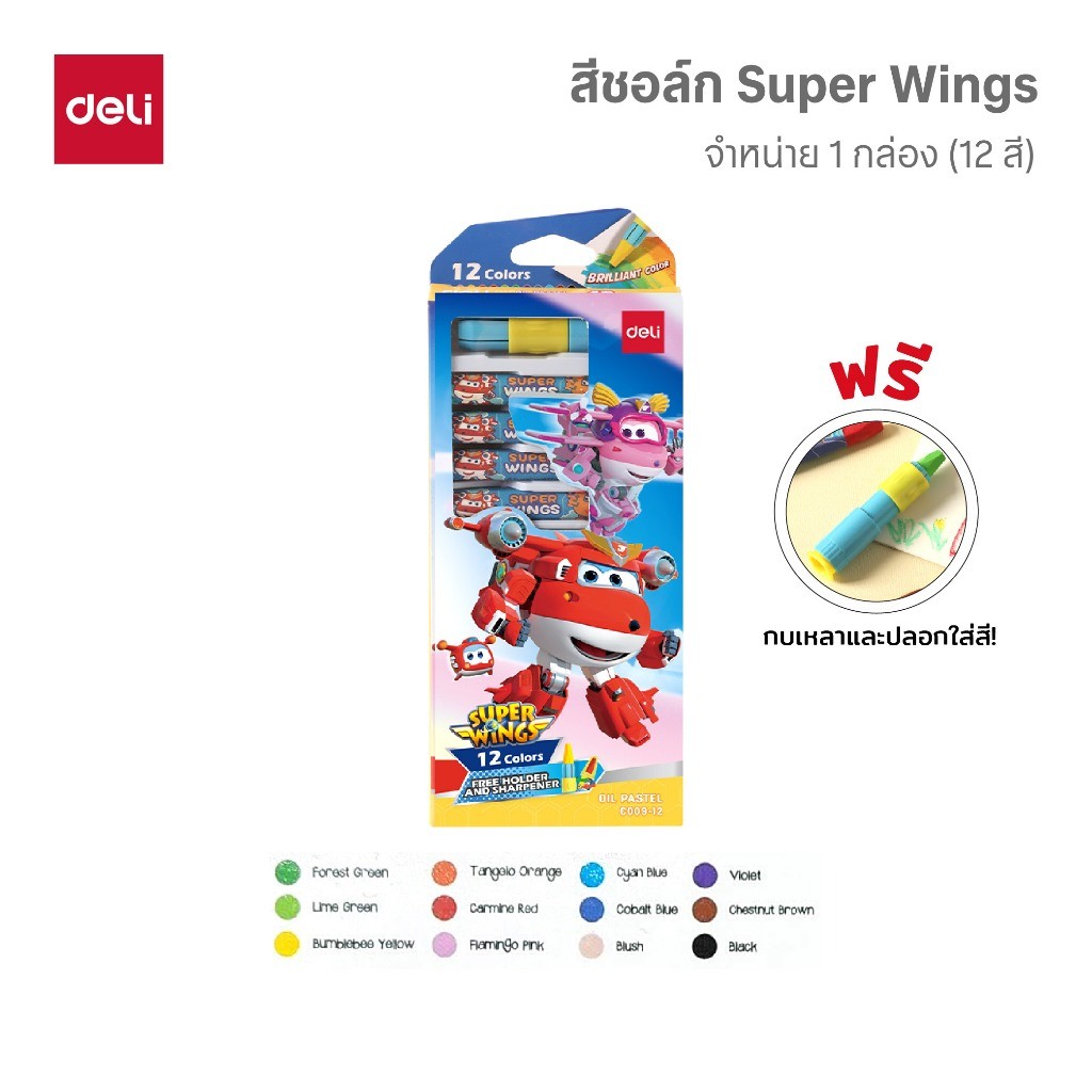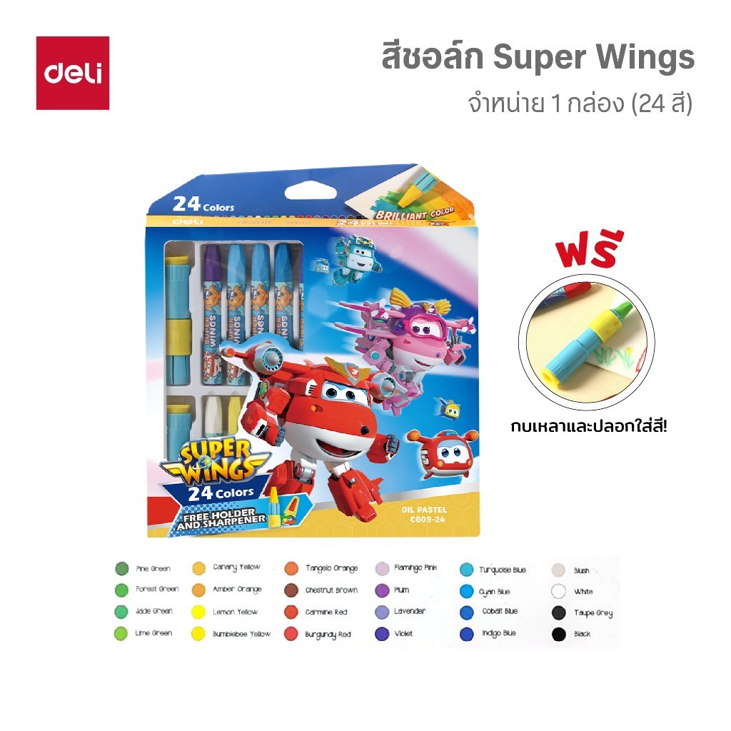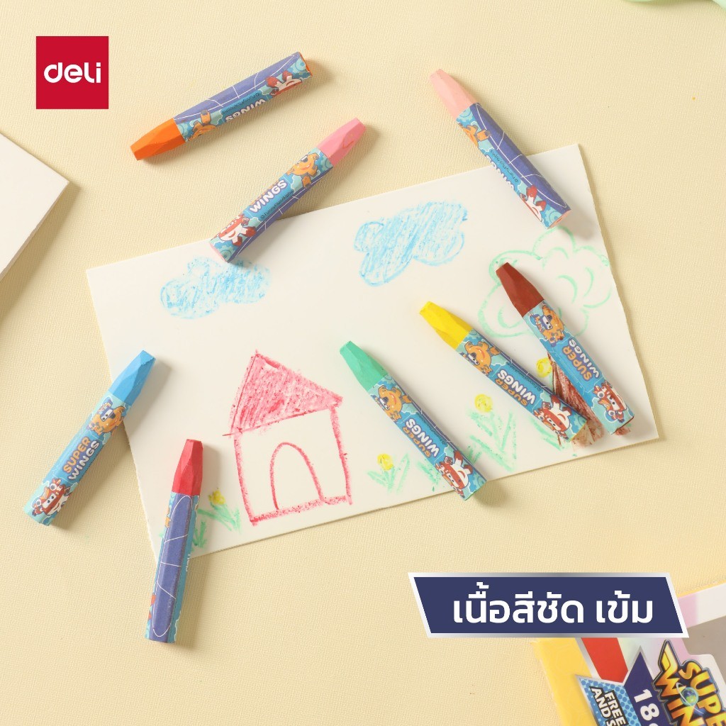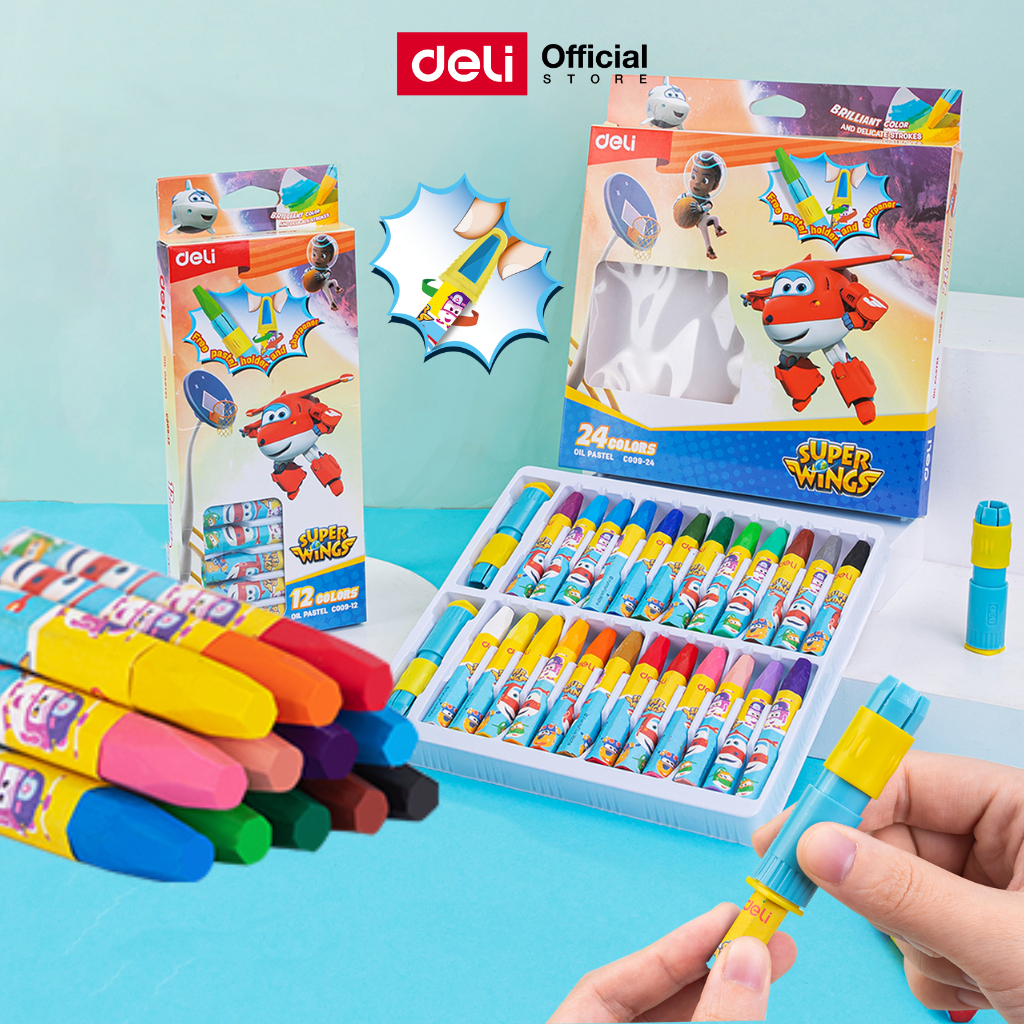 Deli สีชอล์ก Super Wings รุ่น EC009 12/18/24 สี เนื้อสีแน่น Oil Pastel จำหน่าย 1 ชุด