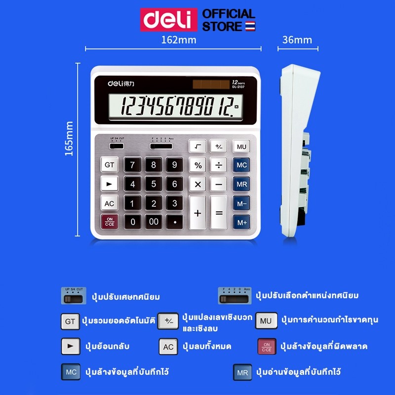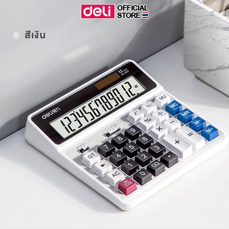 Deli 2137 Desktop Calculator เครื่องคิดเลขตั้งโต๊ะ 12 หลัก ปุ่มโค้งตามองศา จำหน่าย 1 เครื่อง