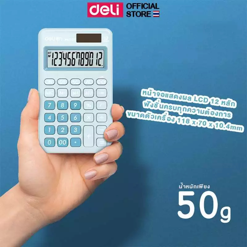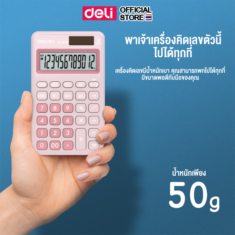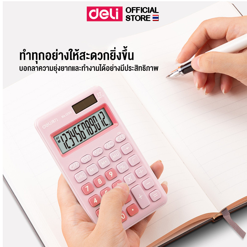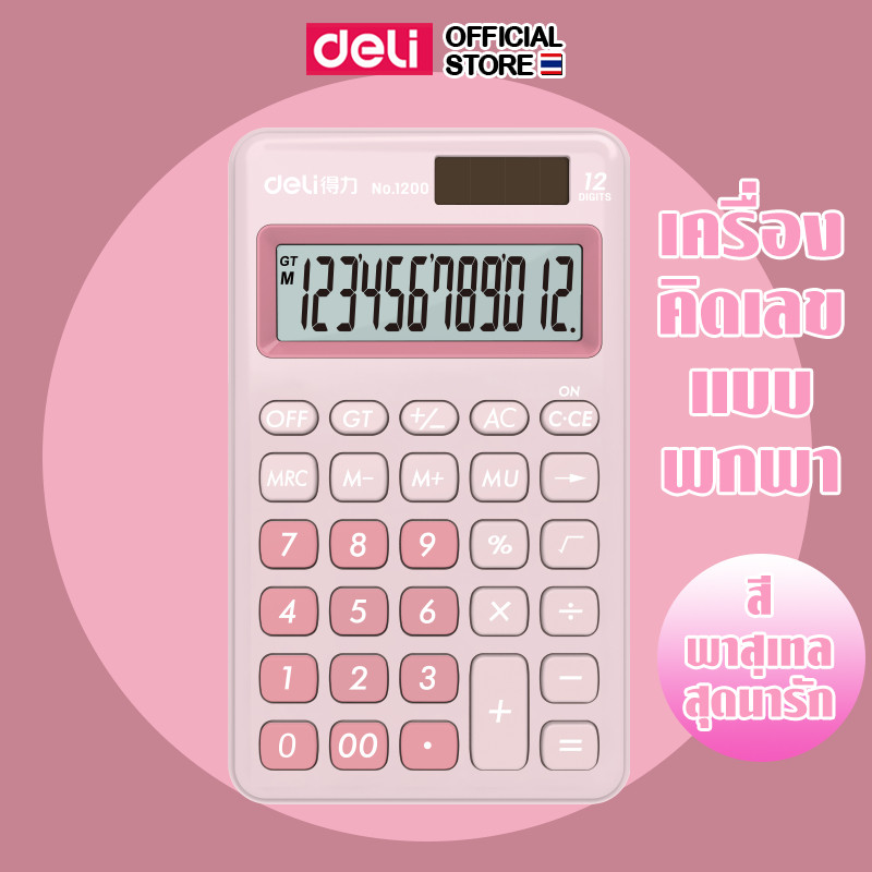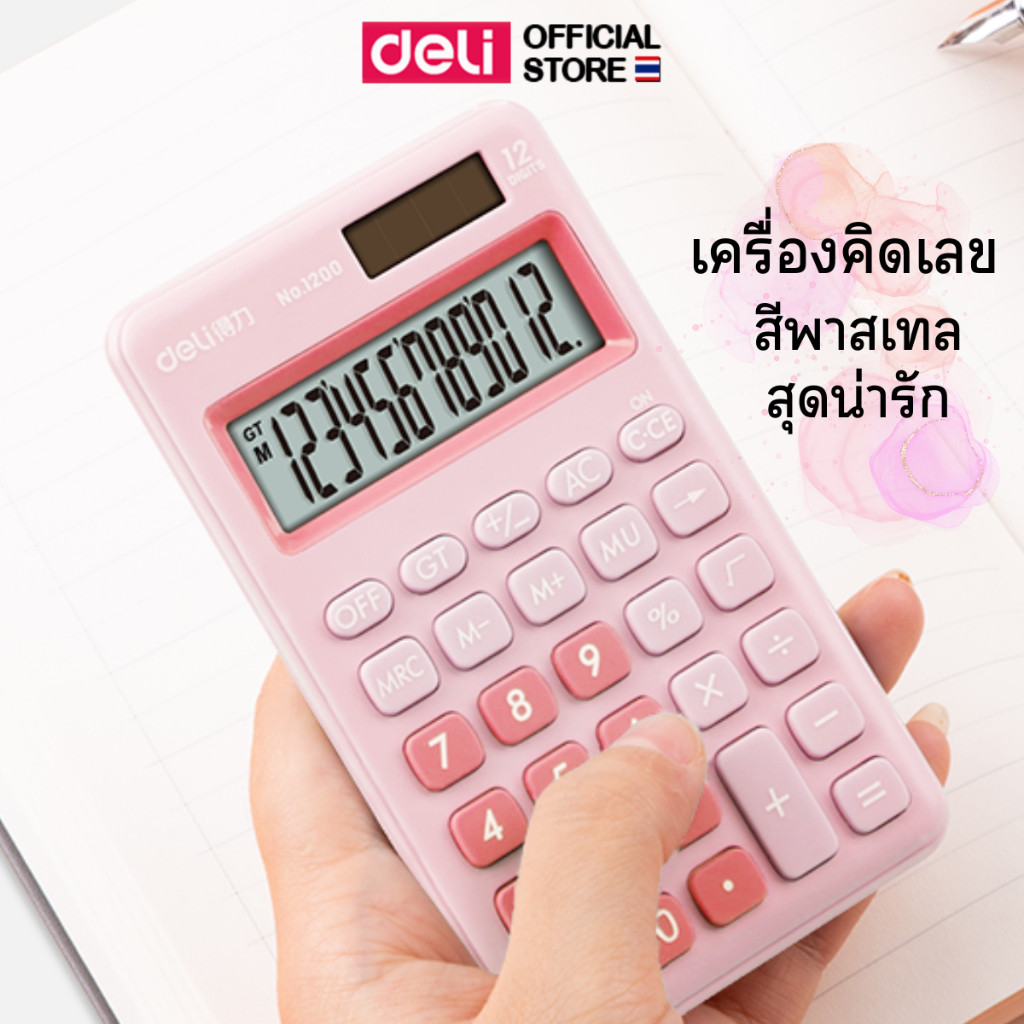 เครื่องคิดเลข Deli 12 ตำแหน่ง คิดเลขแม่นยำ เครื่องคำนวณ คำนวณ เลข คณิตศาสตร์ สีสันน่ารัก สดใส กระทัดรัด พกพาสะดวก สีชมพู