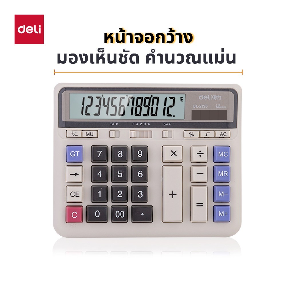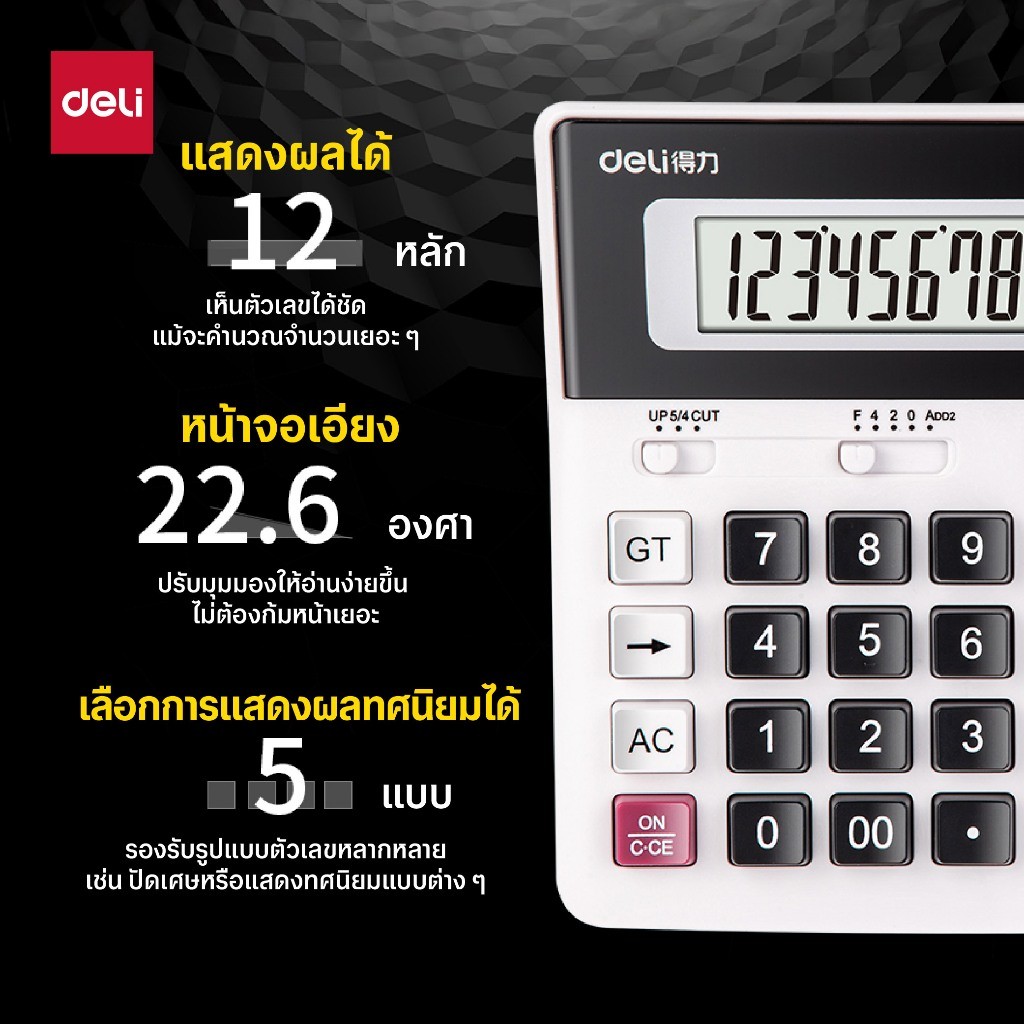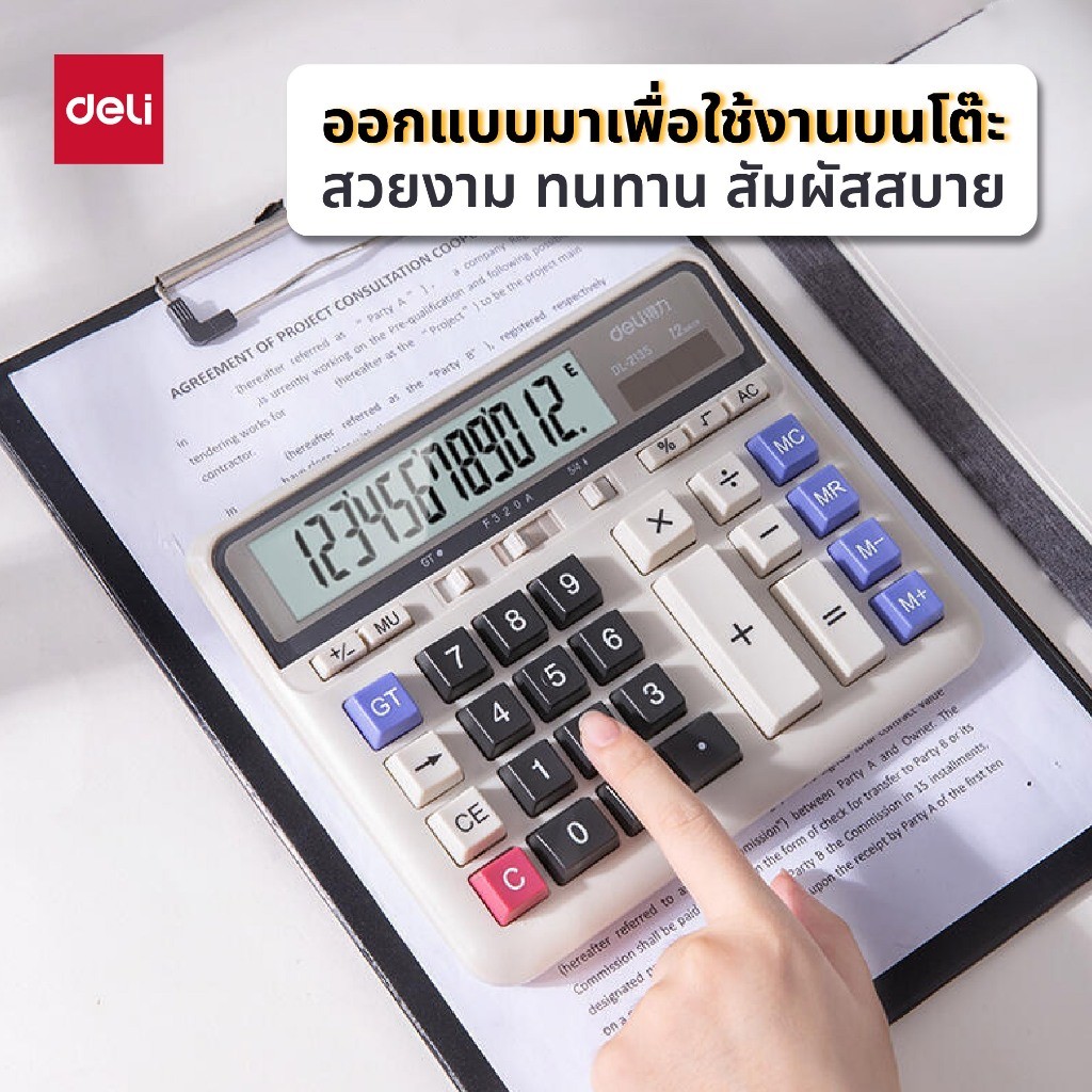Deli เครื่องคิดเลขตั้งโต๊ะแสดงผล 12 หลัก ขนาดใหญ่ ปุ่มใหญ่ ฟังก์ชั่นครบ Calculator จำหน่าย 1 เครื่อง
