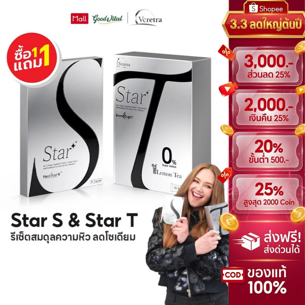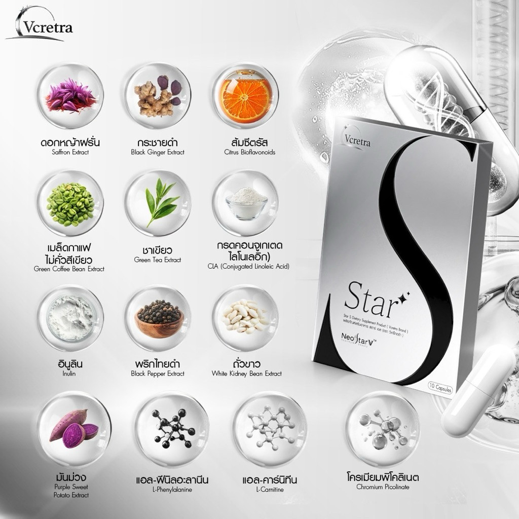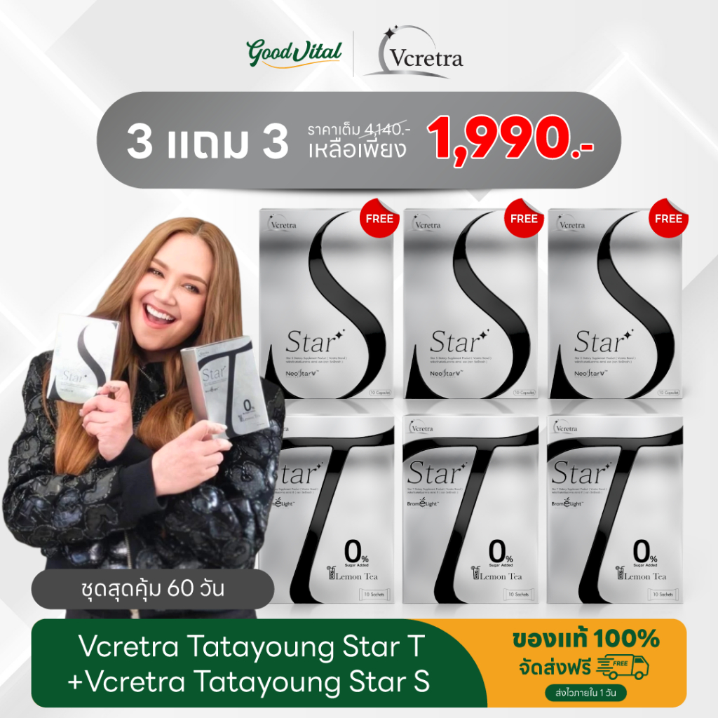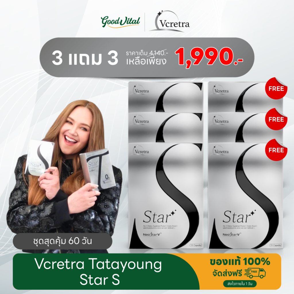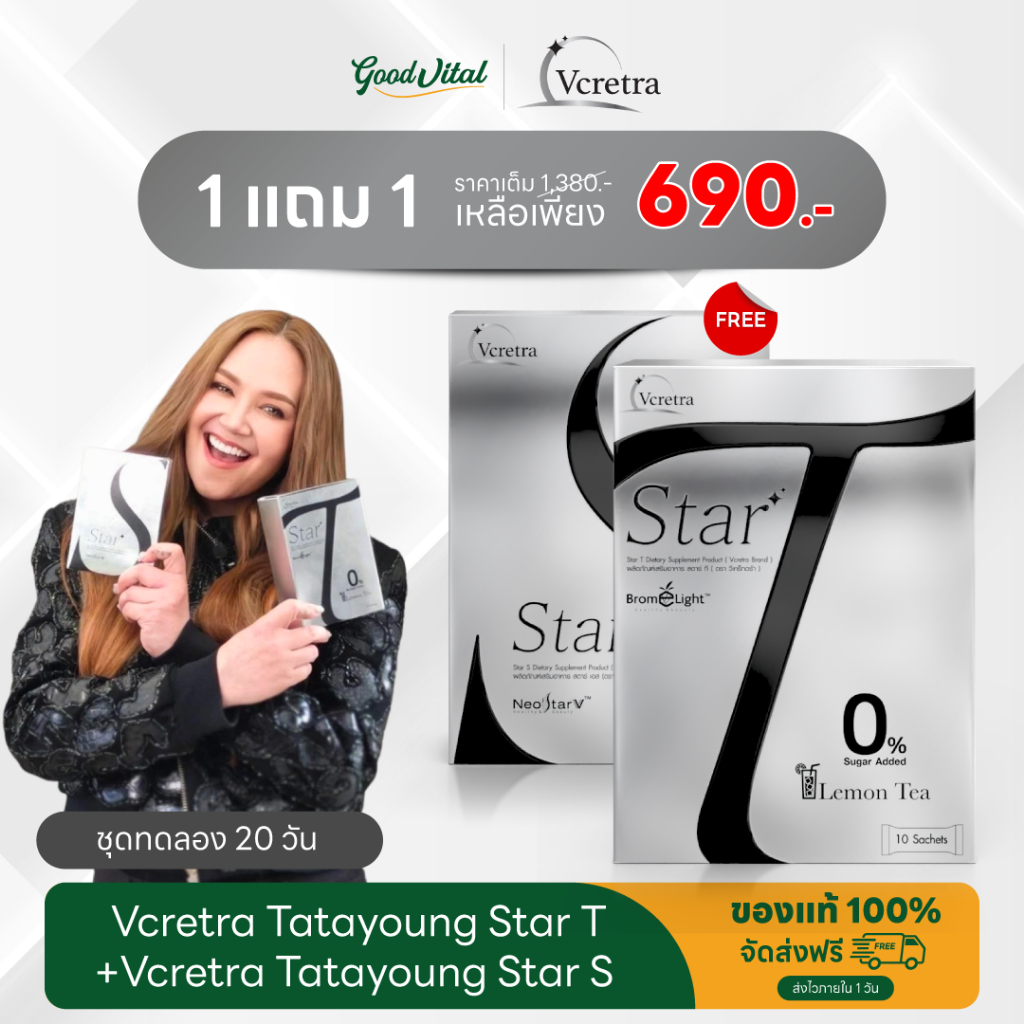 (ส่งแมสได้) Vcretra StarS + StarT วีเคร็ทตร้า สตาร์เอส ทาทายัง มีใยอาหาร สารสกัดธรรมชาติ สูตรTata