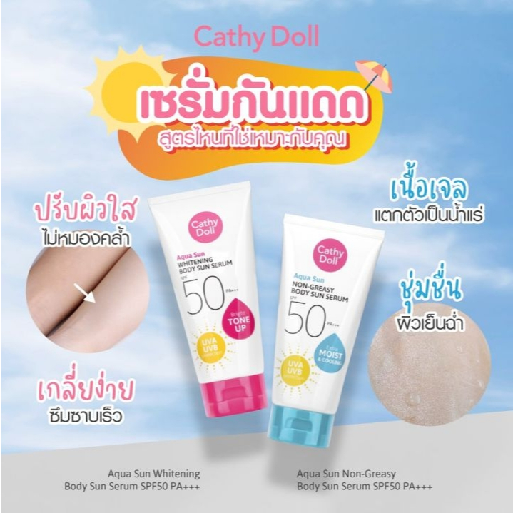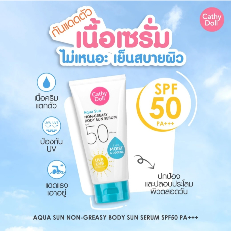Cathy Doll aqua sun body sun serum spf50 pa+++เคที่ดอลล์ ครีมกันแดดทาตัว อควาซัน (ขนาด 138 มล.)
