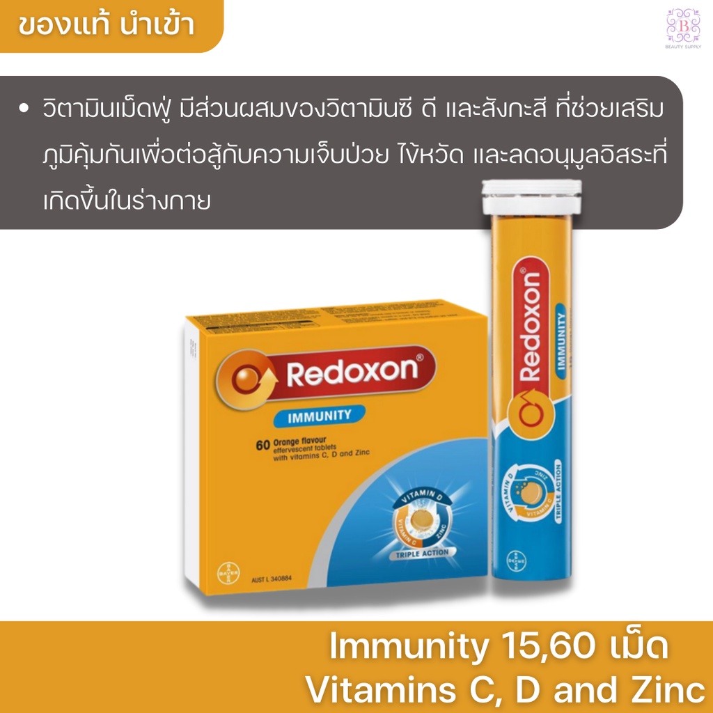 วิตามินเม็ดฟู่ Redoxon Immunity 60 เม็ด Vitamins C, D and Zinc
