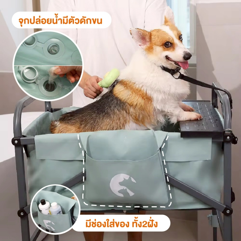 Apetment รถเข็นอาบน้ำสัตว์เลี้ยง พับเก็บได้ มาพร้อมล้อหมุนได้ 360 องศา รุ่น Bubbaw