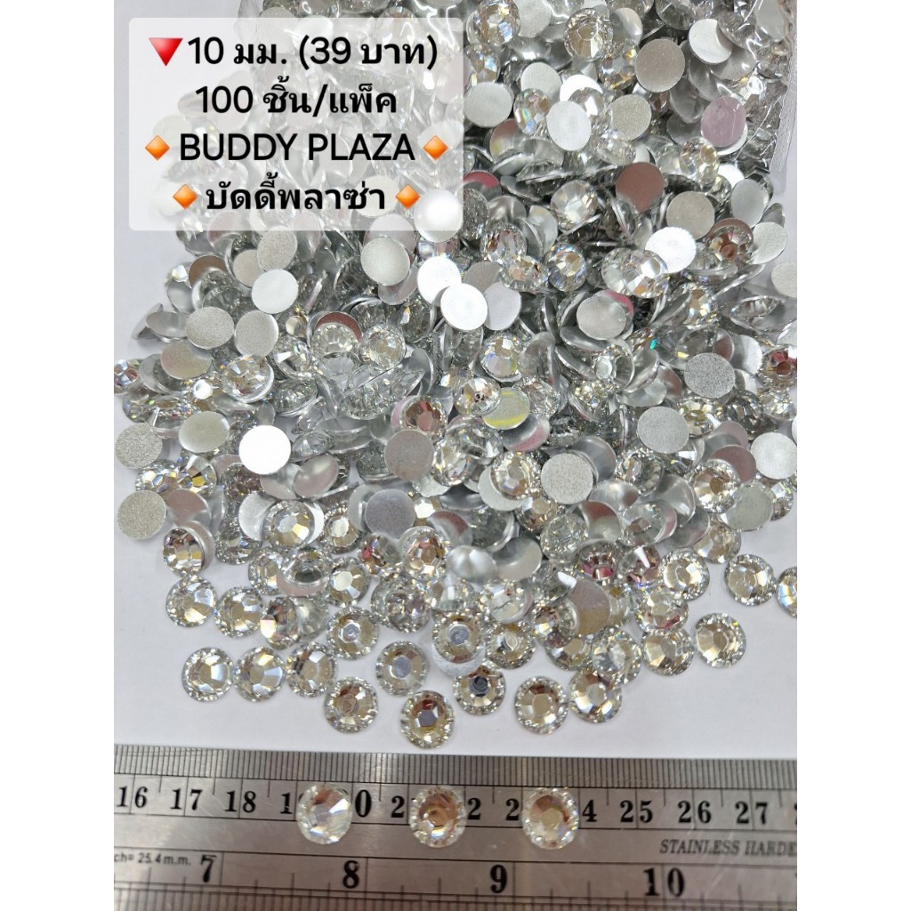 💥พร้อมส่ง เพชรกลม 10 มม. เพชรตกแต่ง พลอยหยดน้ำ เพชรเม็ดกลม ฐานเรียบ อะคริลิค เพชรพลาสติก เม็ดพลอย คริสตัล 100 ชิ้น