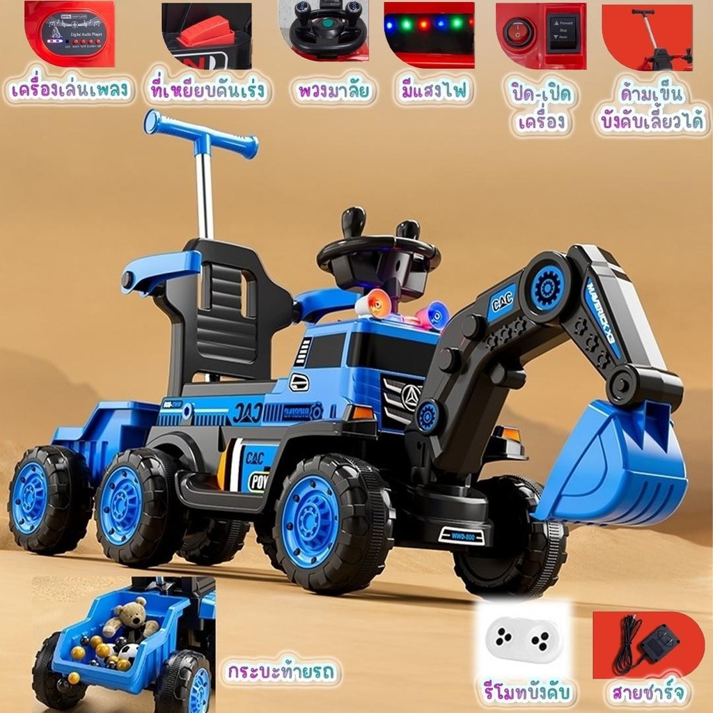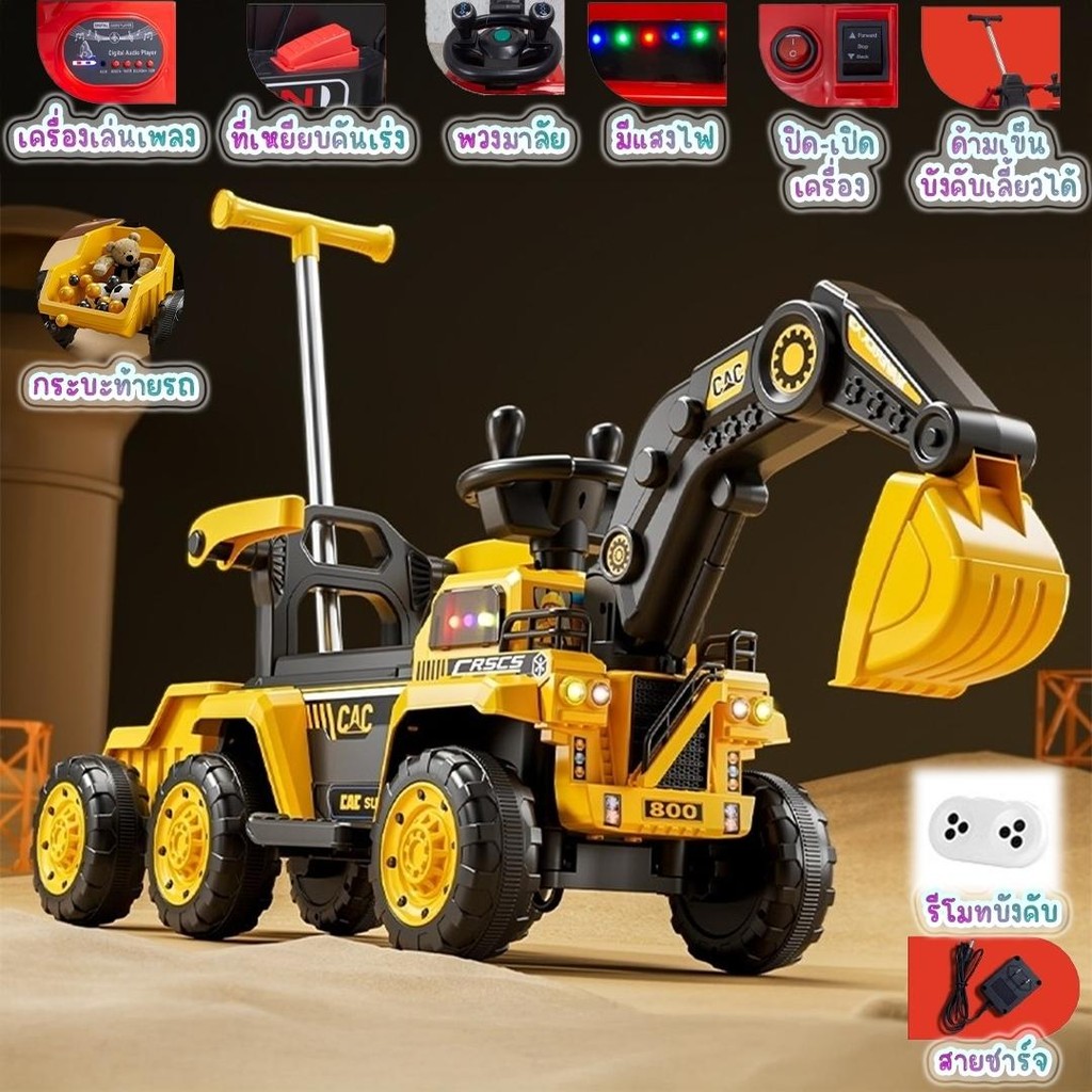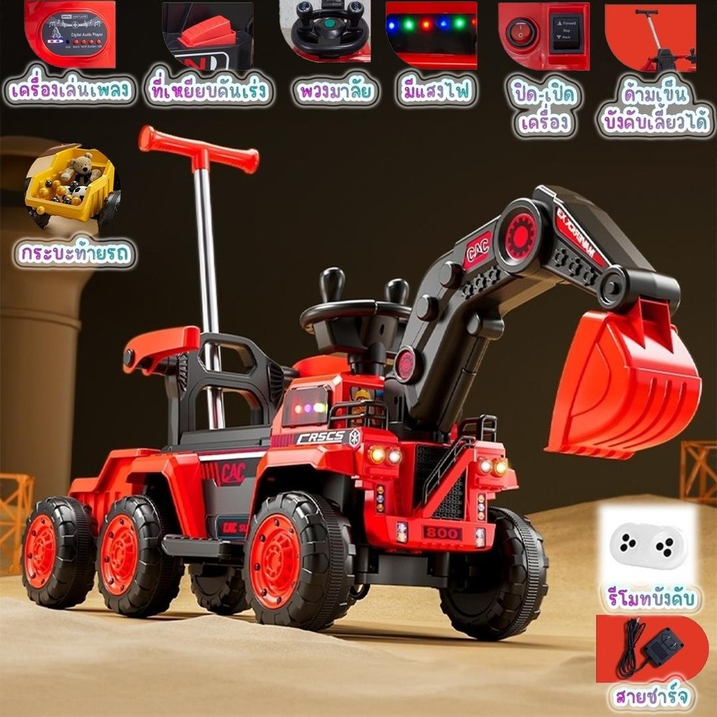 พร้อมส่ง รถแมคโครไฟฟ้าเด็ก รถแมคโครเด็ก รถเด็กเล่น มีเพลง มีไฟ มีรีโมทบังคับ มีกะบะท้าย
