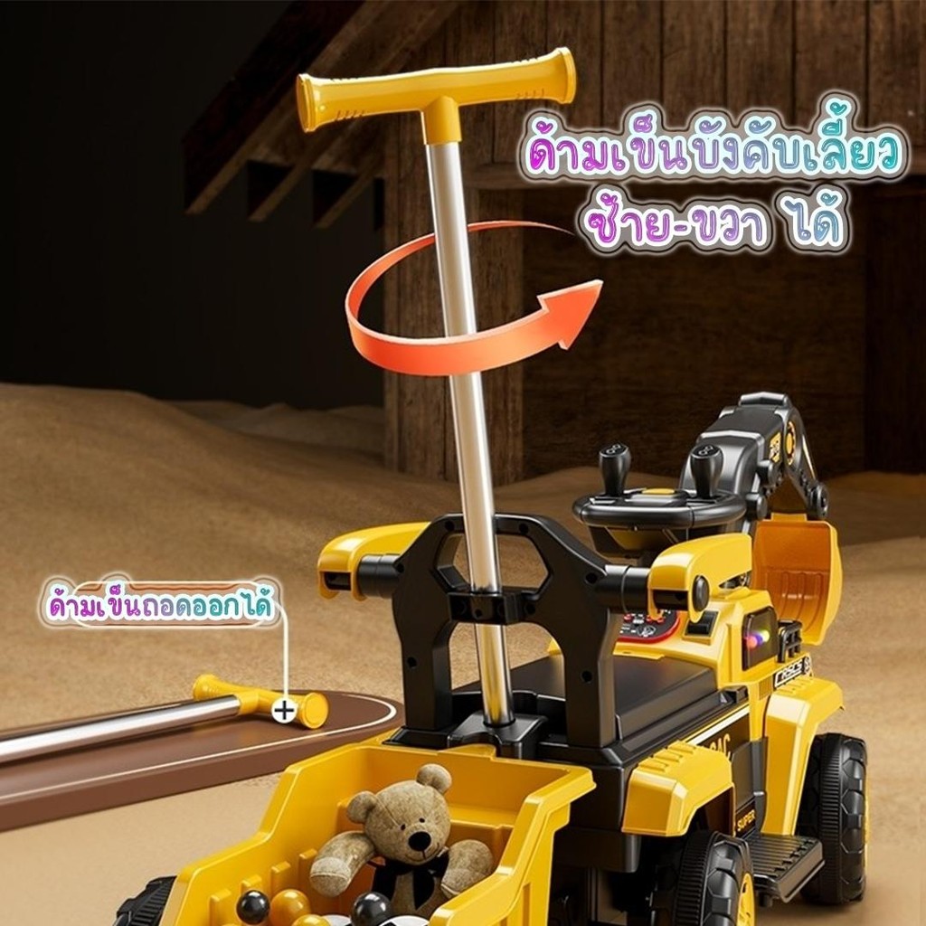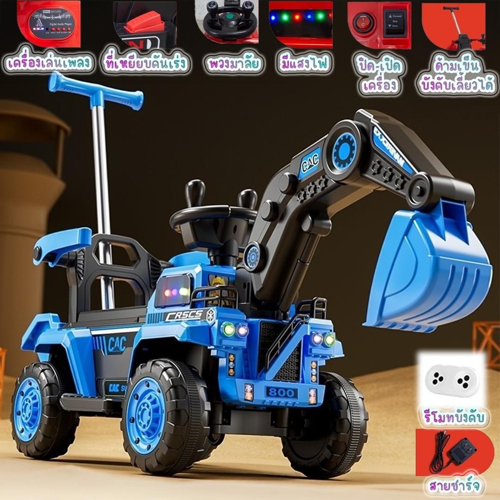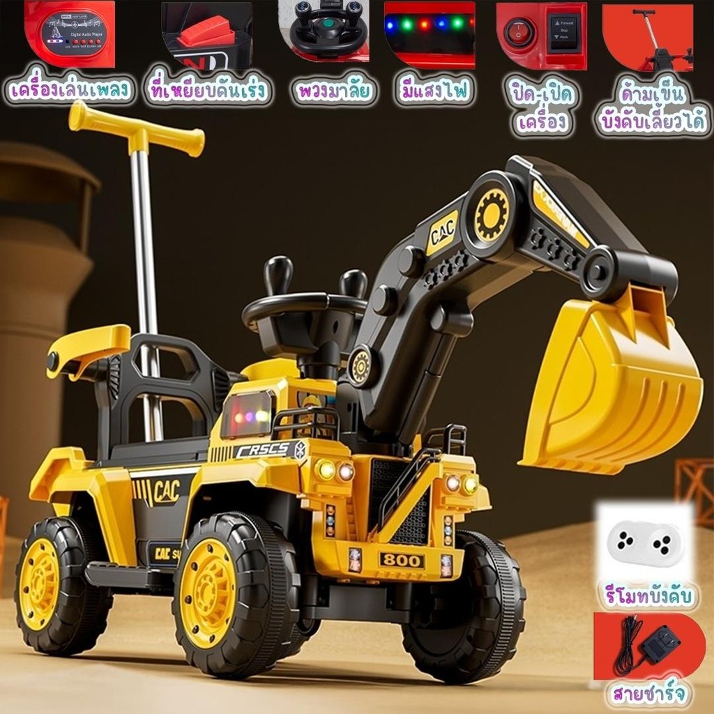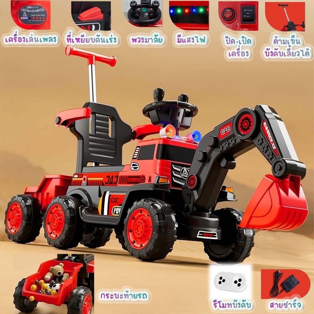 พร้อมส่ง รถแมคโครไฟฟ้าเด็ก รถแมคโครเด็ก รถเด็กเล่น มีเพลง มีไฟ มีรีโมทบังคับ มีกะบะท้าย