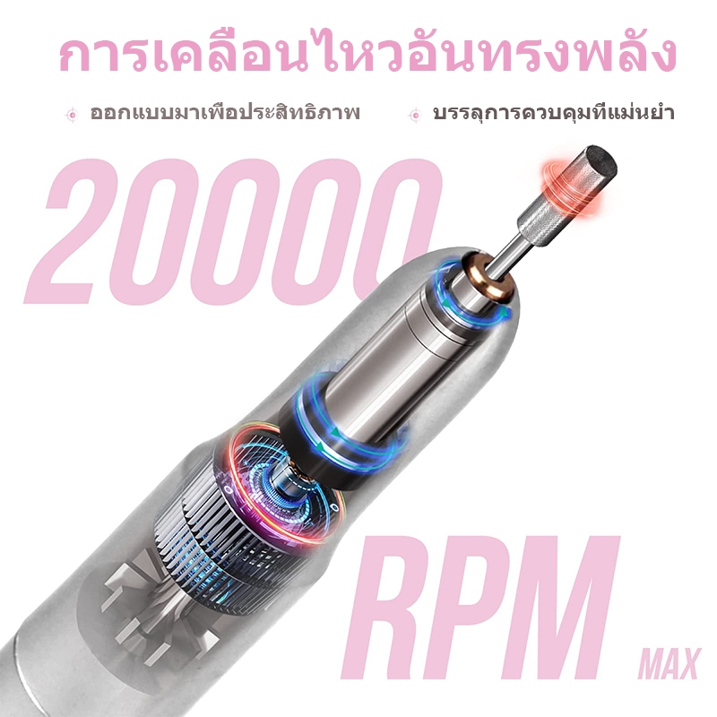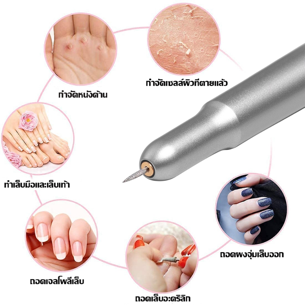 เครื่องเจียรเล็บแบบปากกา เครื่องเจียรเล็บ ขัดเล็บ ตะไบไฟฟ้า 20000 RPM พอร์ต USB หัวเจียรแบบเปลี่ยนได้ ปรับความเร็วได้