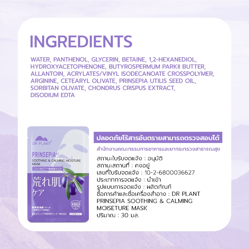 Dr.Plant Prinsepia Soothing & Calming Moisture Mask มาส์กผิวจากพริ้นเซเปีย ประโลมผิว ลดรอยแดง แบบซอง