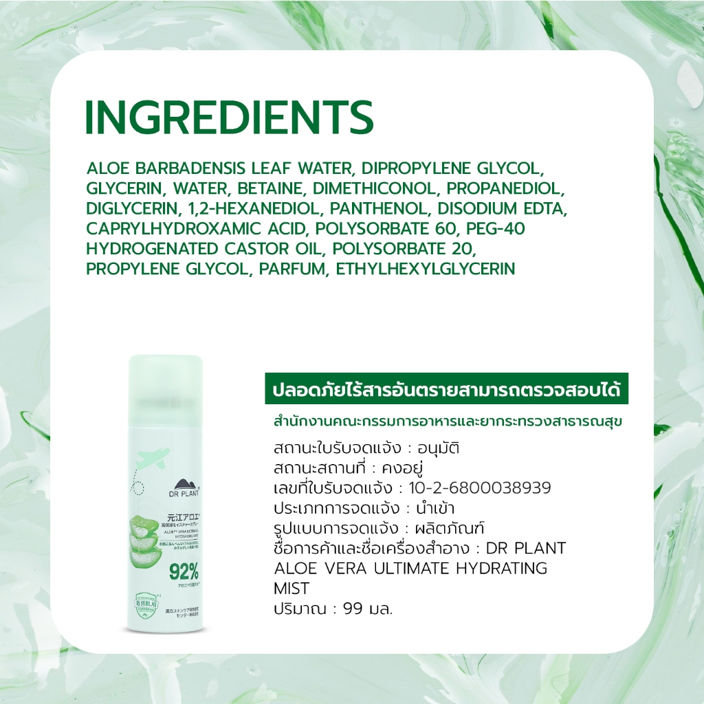 Dr.Plant Aloe Vera Hydrating Face Mist สเปรย์น้ำแร่บำรุงผิวว่านหางจระเข้ เติมความชุ่มชื้นให้ผิว