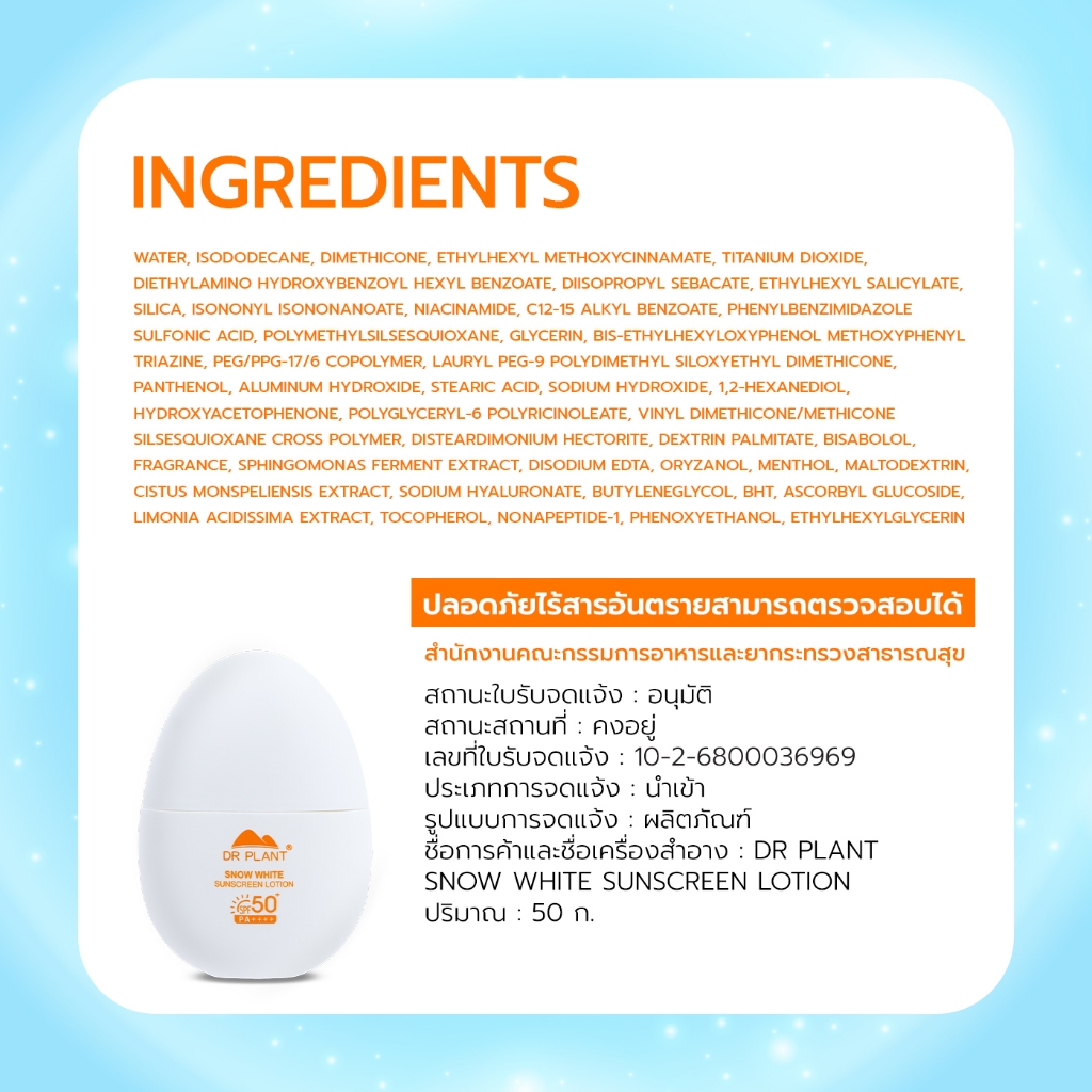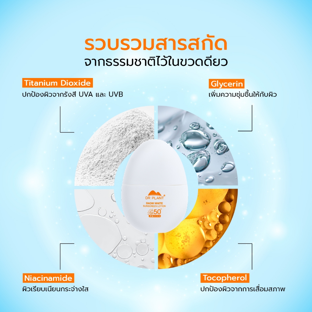[1 แถม 1] Dr.Plant Snow White Sunscreen Lotion SPF50+ PA++++ โลชั่นกันแดด ป้องกันแสงแดด ผิวกระจ่างใส