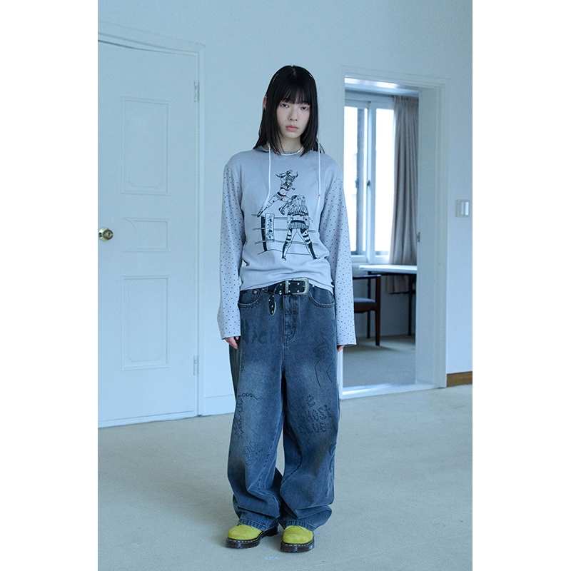 [niceghostclub] WRESTLING STAR L/S TEE_สไตล์เกาหลี