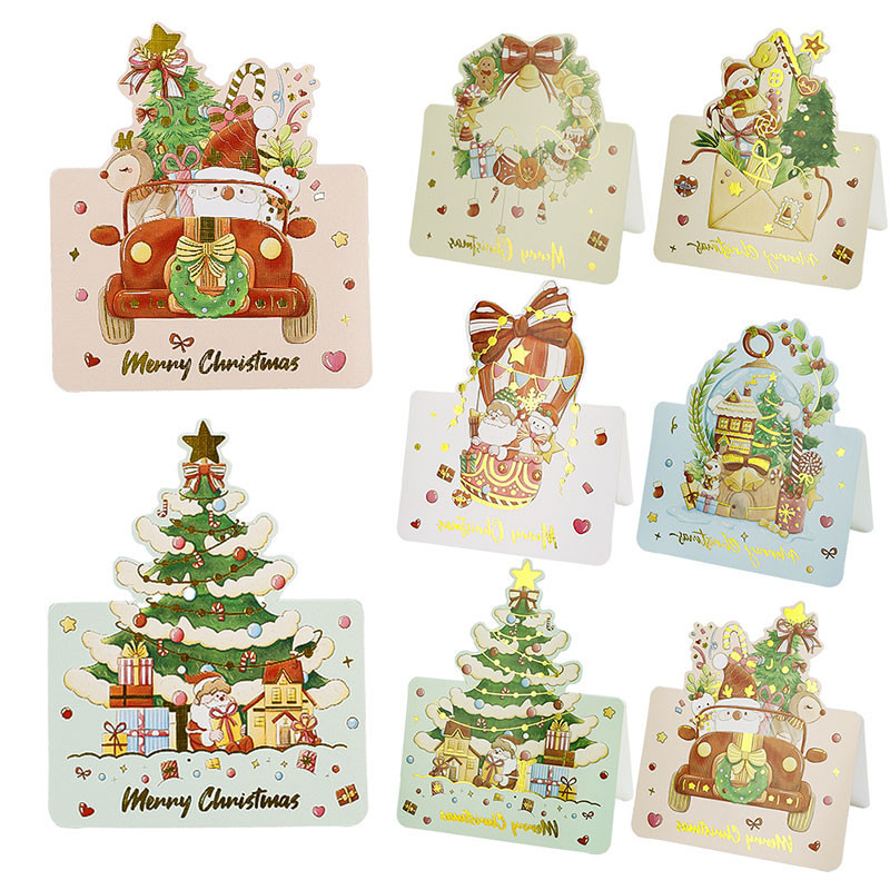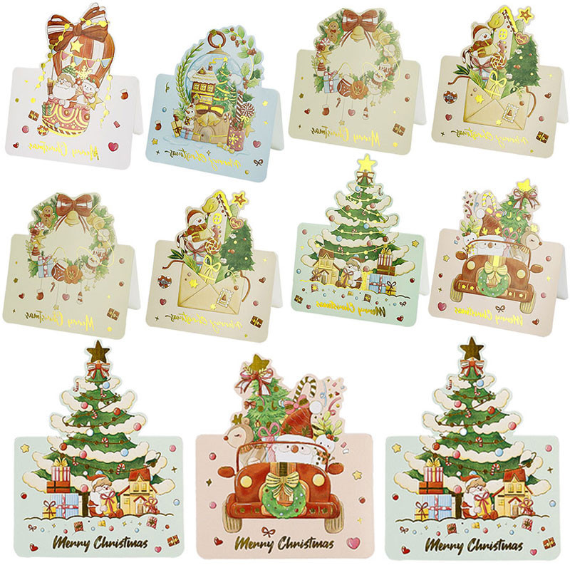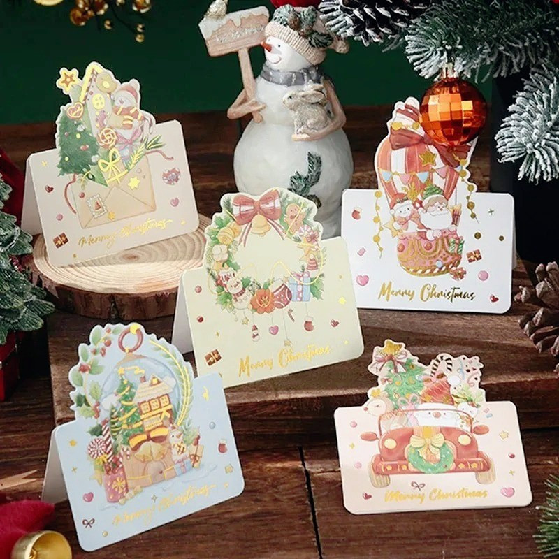 1/3/5 ชิ้น การ์ดอวยพรคริสต์มาสการ์ตูน / โปสการ์ดอวยพรเทศกาลปี ใหม่ ของตกแต่งงานปาร์ตี้คริสต์มาส