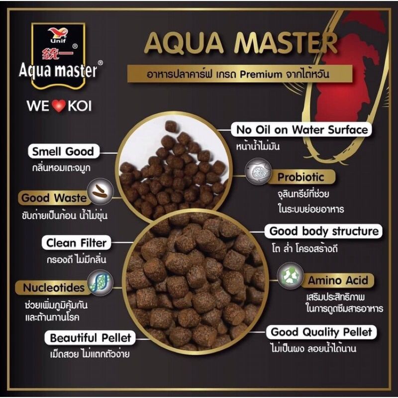[1 Kg.] Aqua Master (อความาสเตอร์) อาหารปลาคาร์ ฟเกรดพรีเมี่ยม จากประเทศไต้หวัน ขนาดถุง 1 กก.