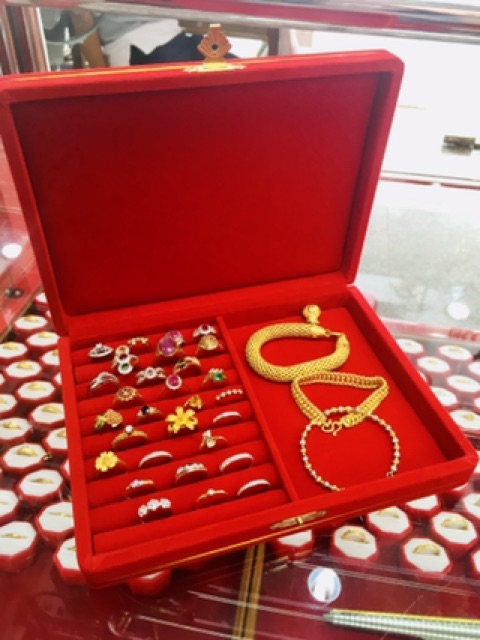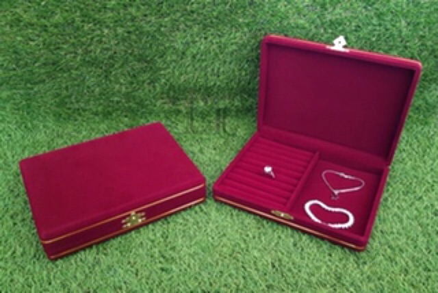 กล่องกำมะหยี่ กล่องคิ้วทอง ฟูกครึ่ง ใส่แหวน ใส่สร้อย กล่องใส่เครื่องประดับกำมะหยี่ กล่องเก็บเครื่องประดับ