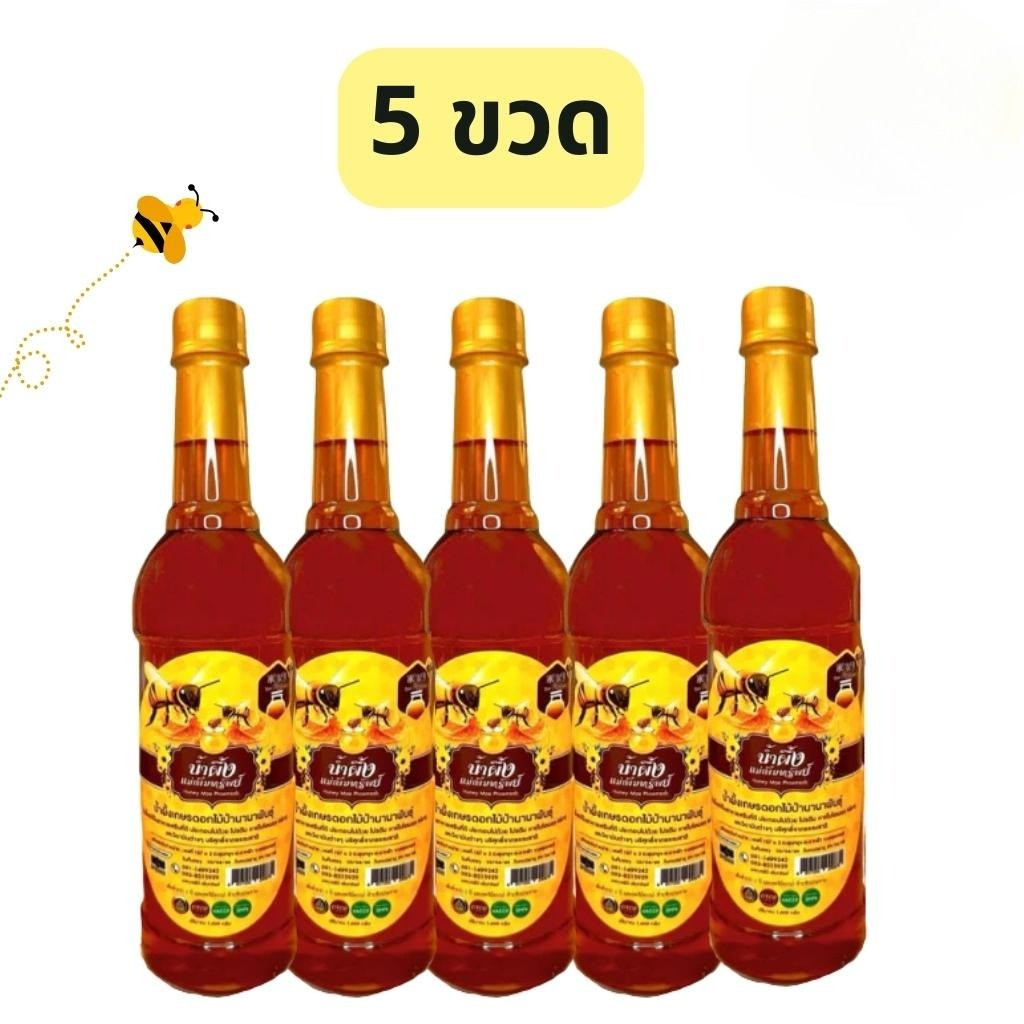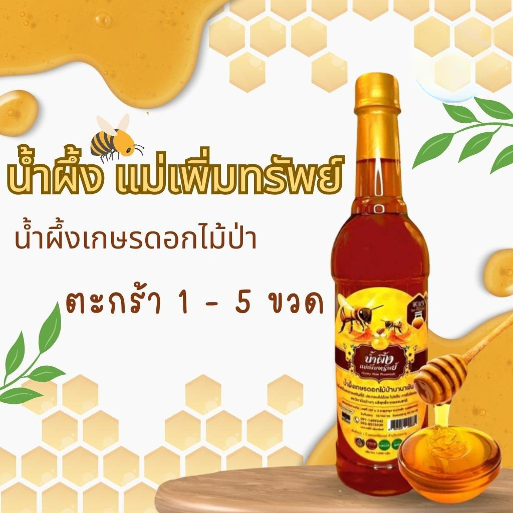 น้ำผึ้งแม่เพิ่มทรัพย์ น้ำผึ้ง ดอกไม้ป่านานาพันธุ์จากธรรมชาติ ขนาด 1000 กรัม (1-5ขวด)