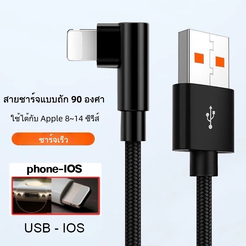 สายชาร์จ 120W 6A ชาร์จเร็วสุดๆ สายถัก 90 องศาสำหรับ IOS Hwei opp เข้ากันได้กับอินเทอร์เฟซ TypeC, IP, Micro USB 0.3ม/1ม/2ม