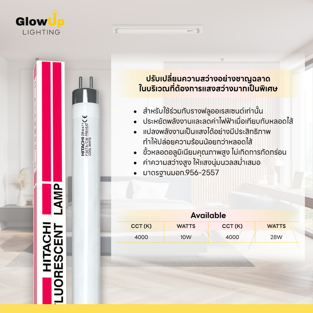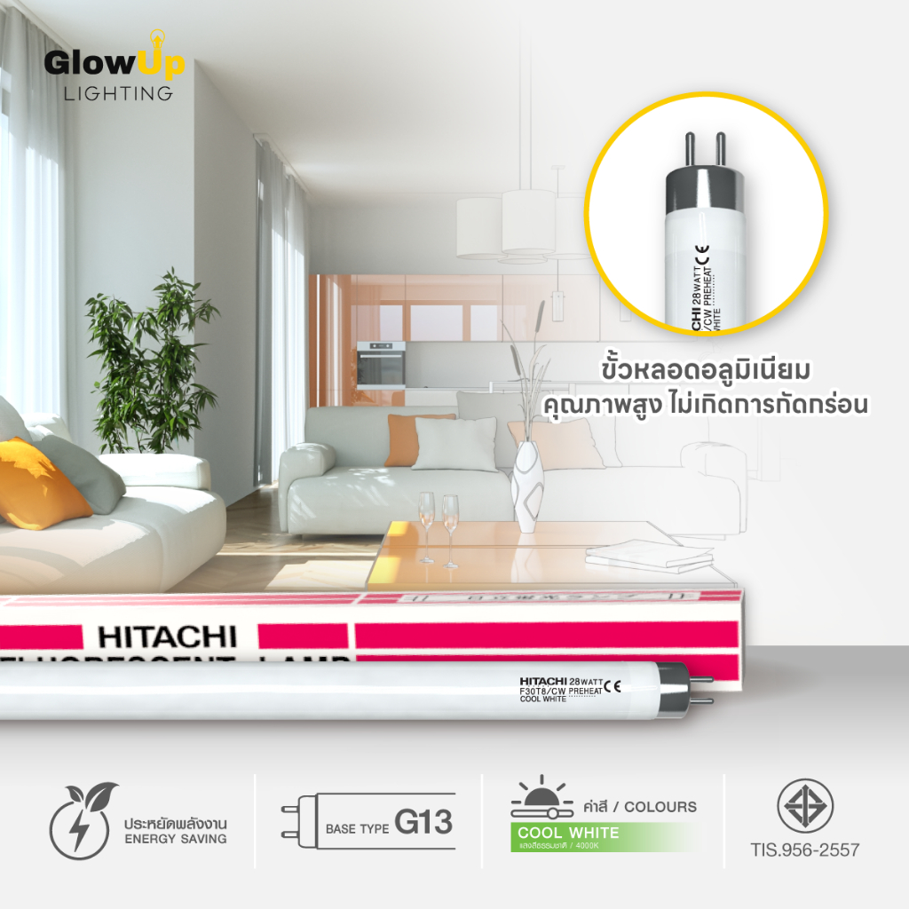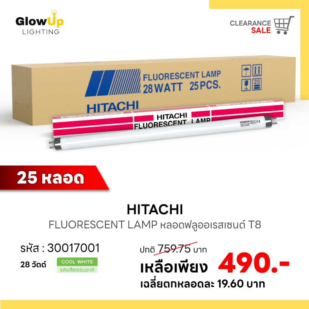 (ยกลัง 25 หลอด) HITACHI หลอดฟลูออเรสเซนต์ T8 28วัตต์ (แสงคูลไวท์)