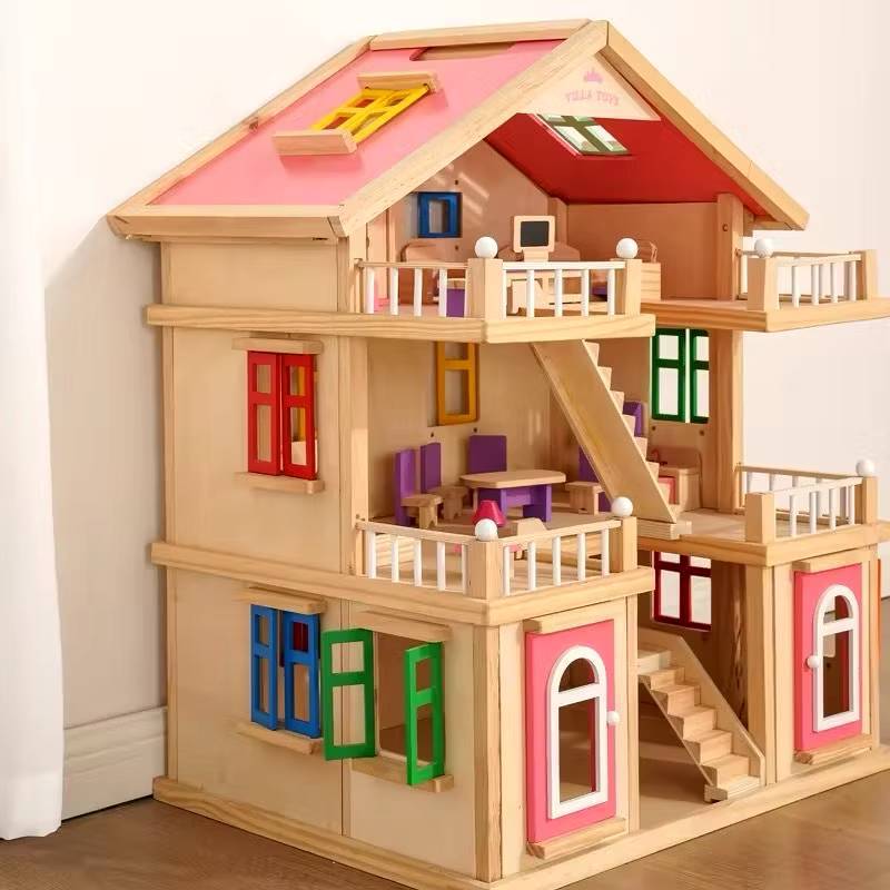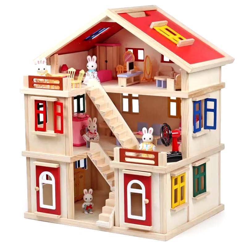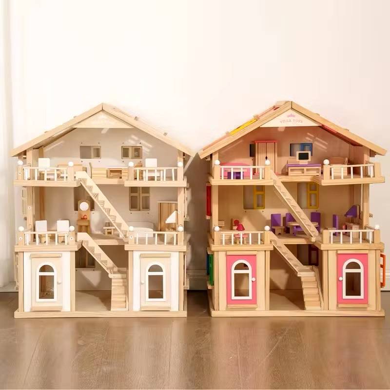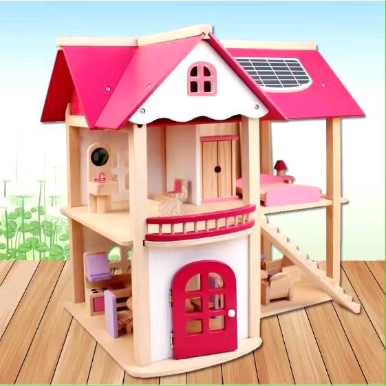 บ้านไม้จำลอง บ้านตุ๊กตา พร้อมเฟอร์นิเจอร์บ้านไม้จำลอง บ้านไม้เจ้าหญิงของเล่น