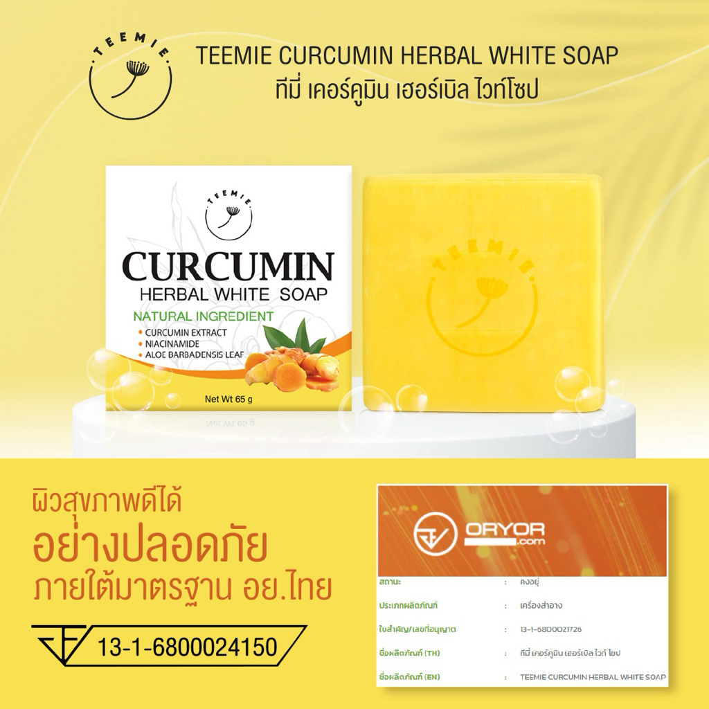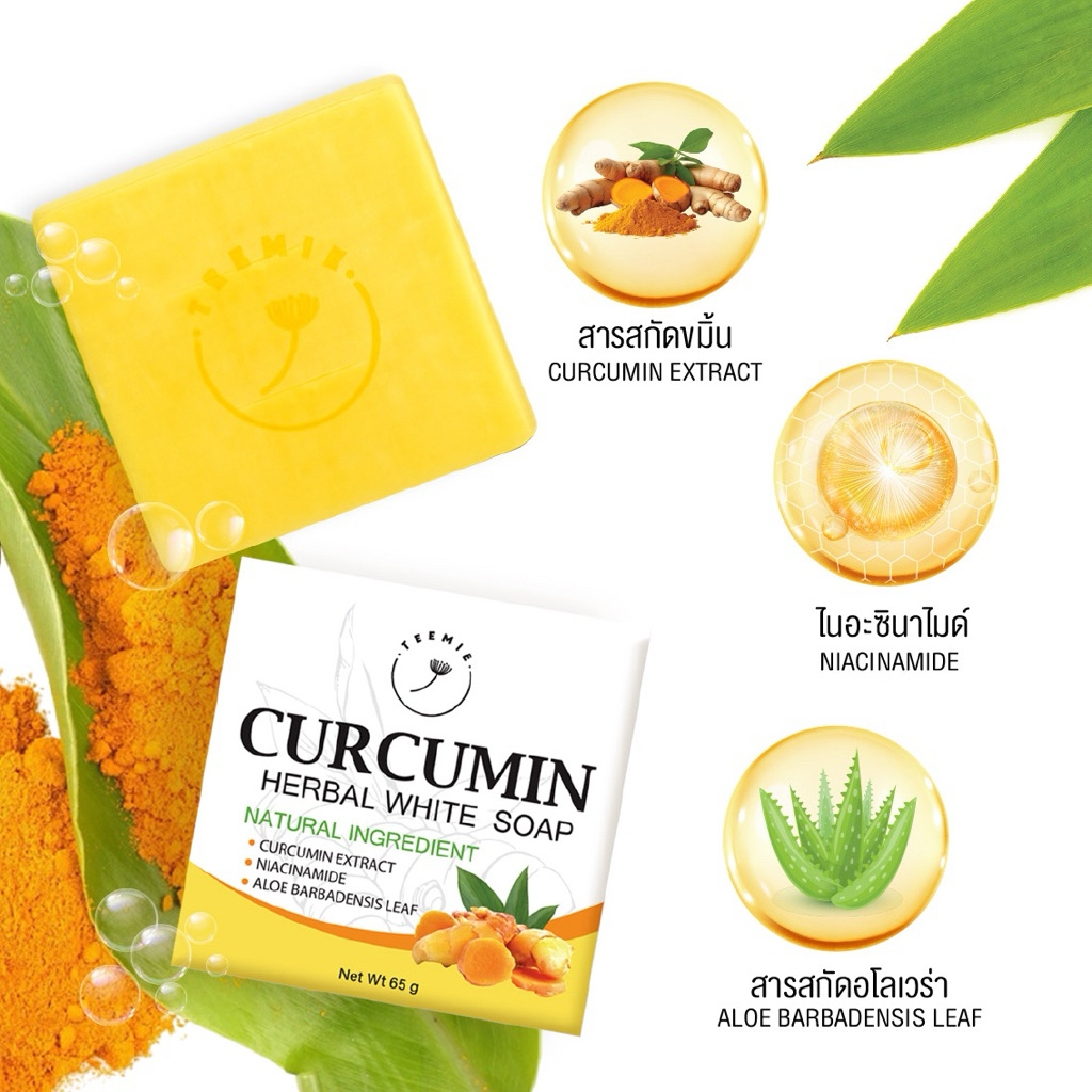 (สบู่ผิวกาย) สบู่ขมิ้นชัน สูตรสมุนไพรธรรมชาติ Curcumin Herbal White Soap ขนาด 65กรัม