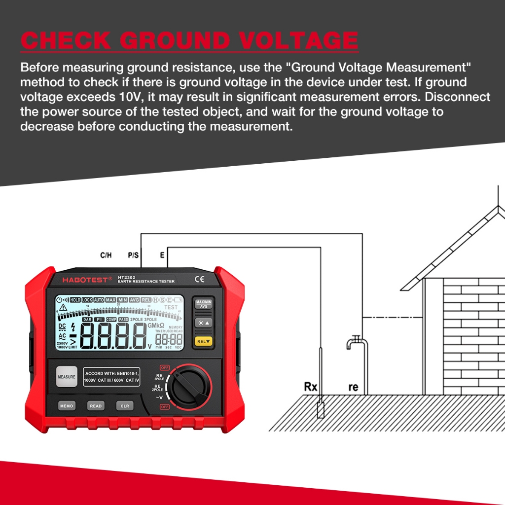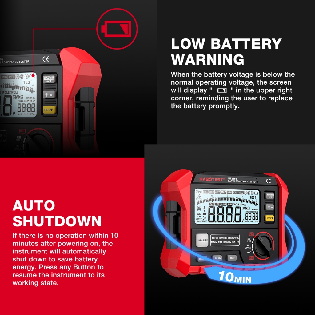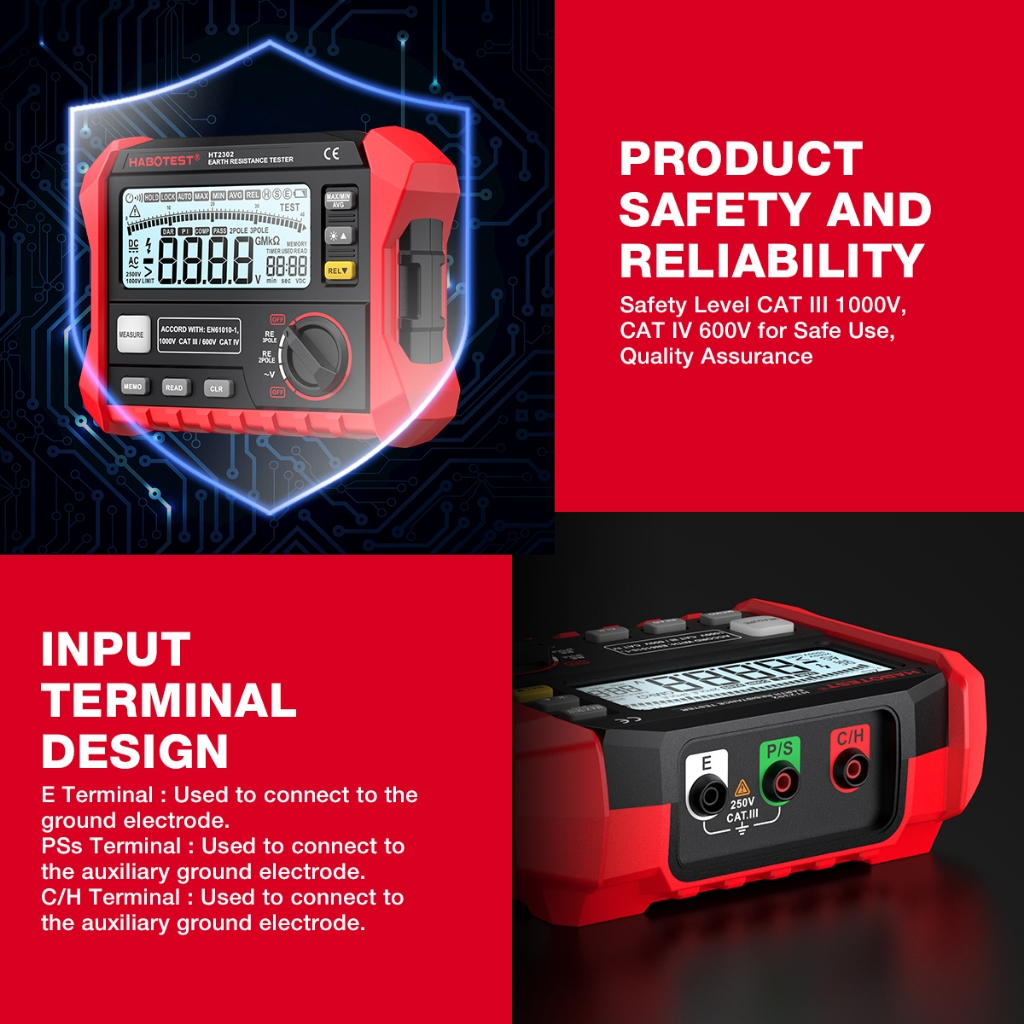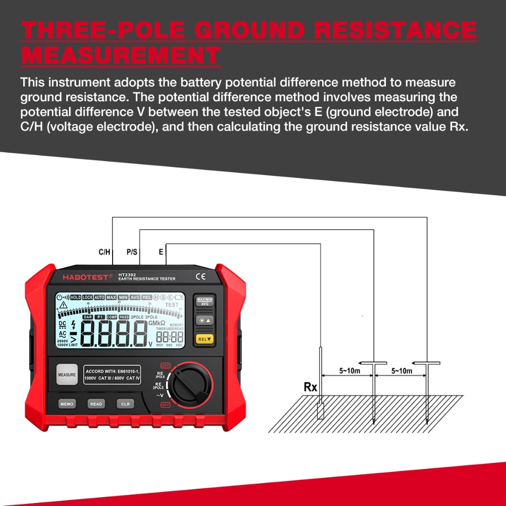 HABOTEST HT2302 เครื่องทดสอบความต้านทานฉนวน Earth Ground Resistance Tester Digital Megohmmeter Meter 100 กลุ่มการจัดเก็บข้อมูล