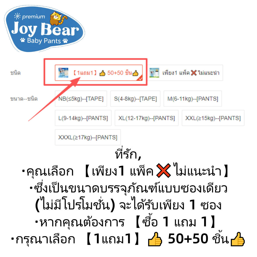 【Buy 1 get 1】JOY BEAR 50+50ชิ้น แพมเพิสเด็ก ผ้าอ้อม กางเกง นุ่ม บางเบา ชิ้นผ้าอ้อ มเด็ก กางเกง แบบเทปNB-3XL BABY DIAPER