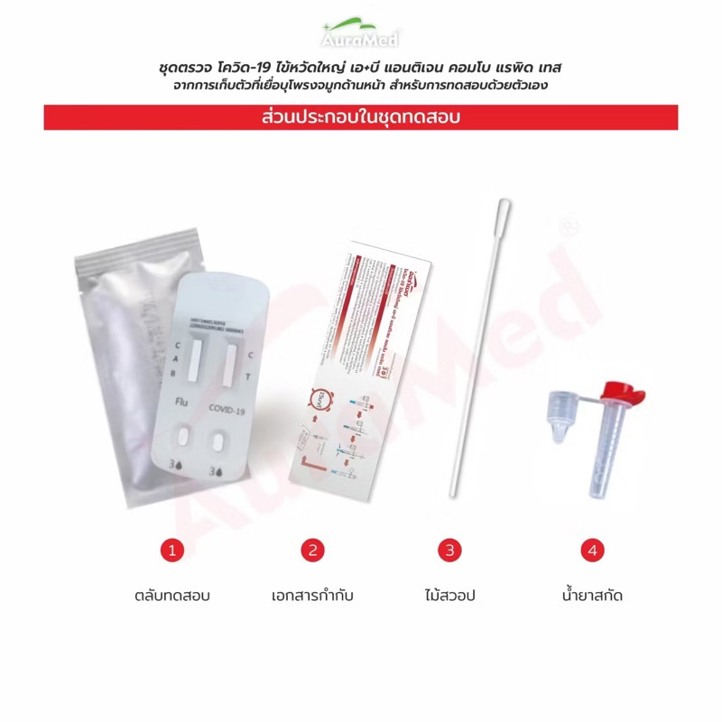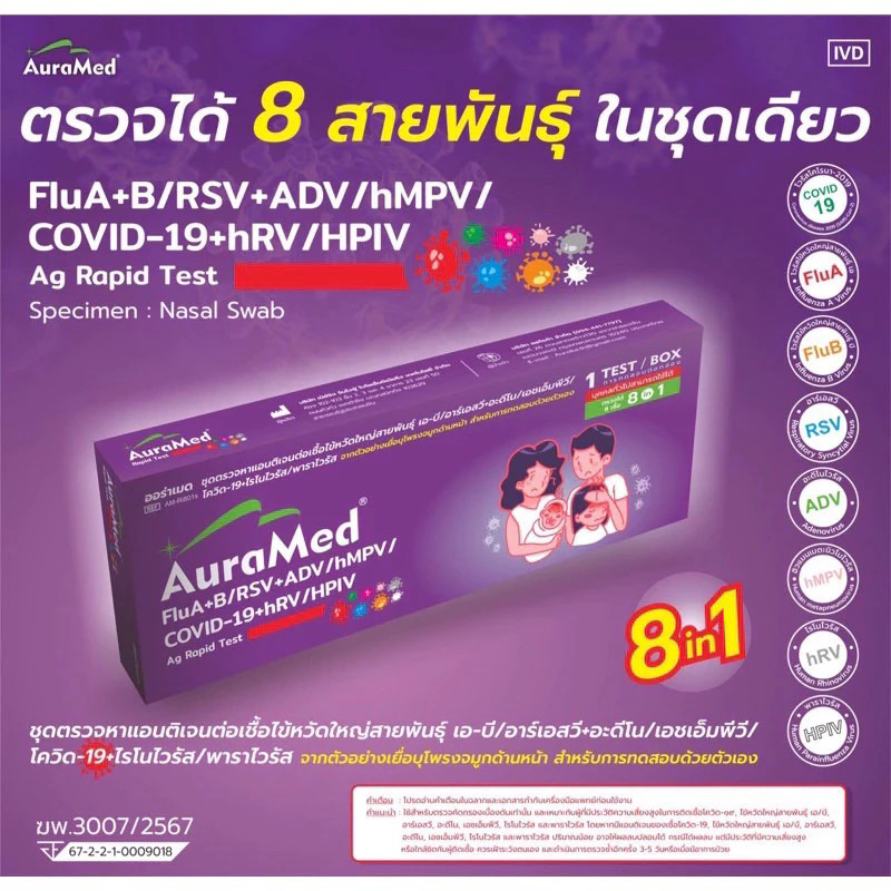 ชุดตรวจไข้หวัด 3 เชื้อ Covid หวัดใหญ่flu A/B และ โควิด Covid-19 Auramed 3in1 ออราเมด nasal swab