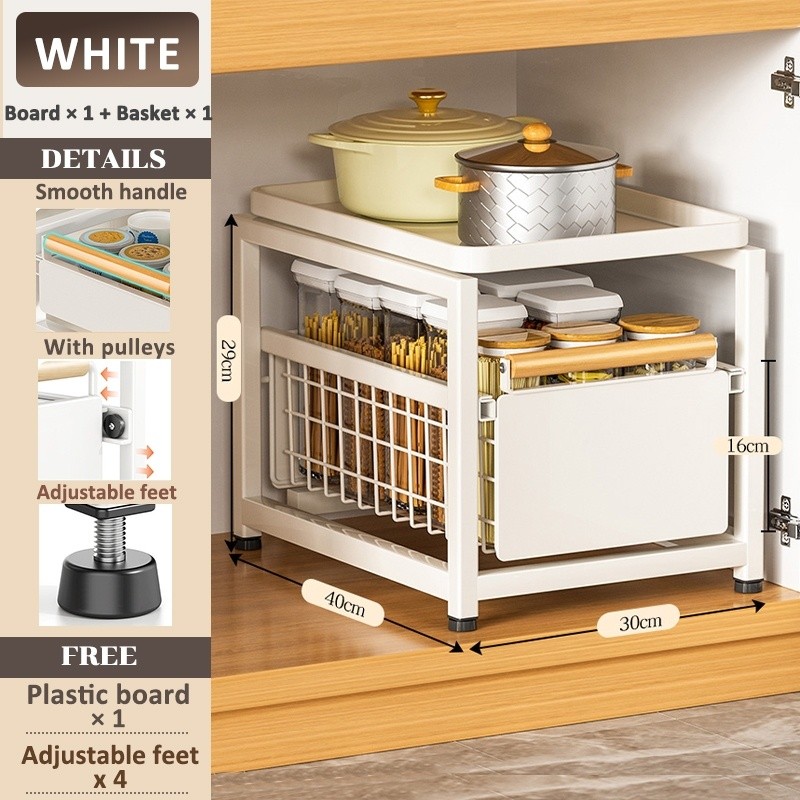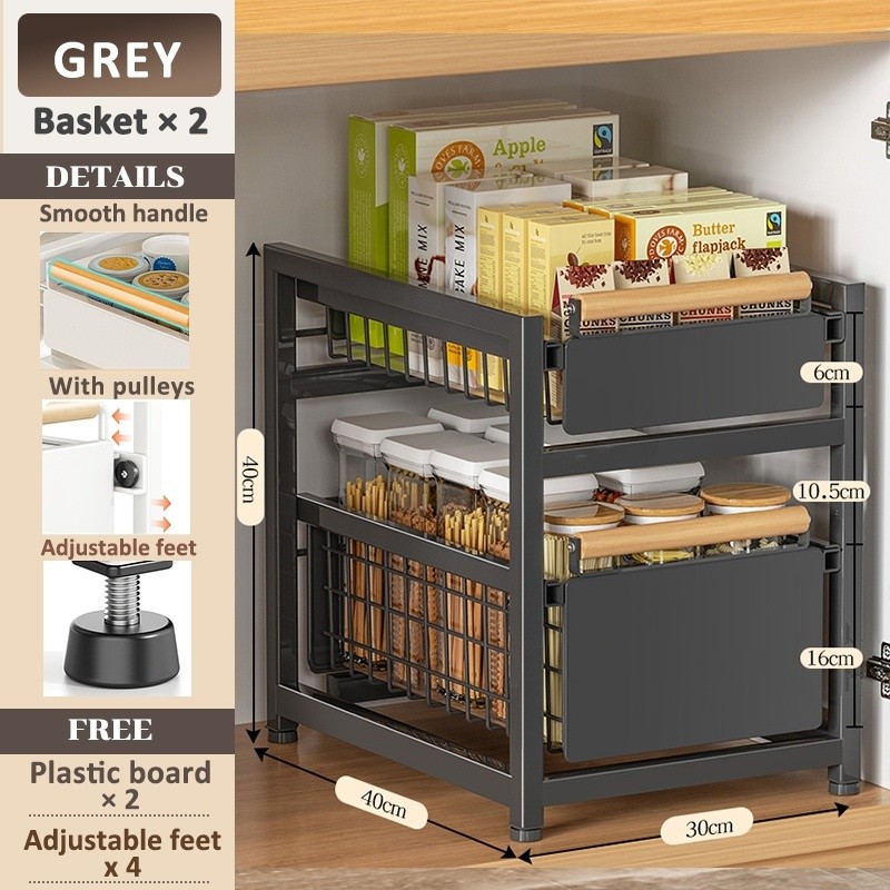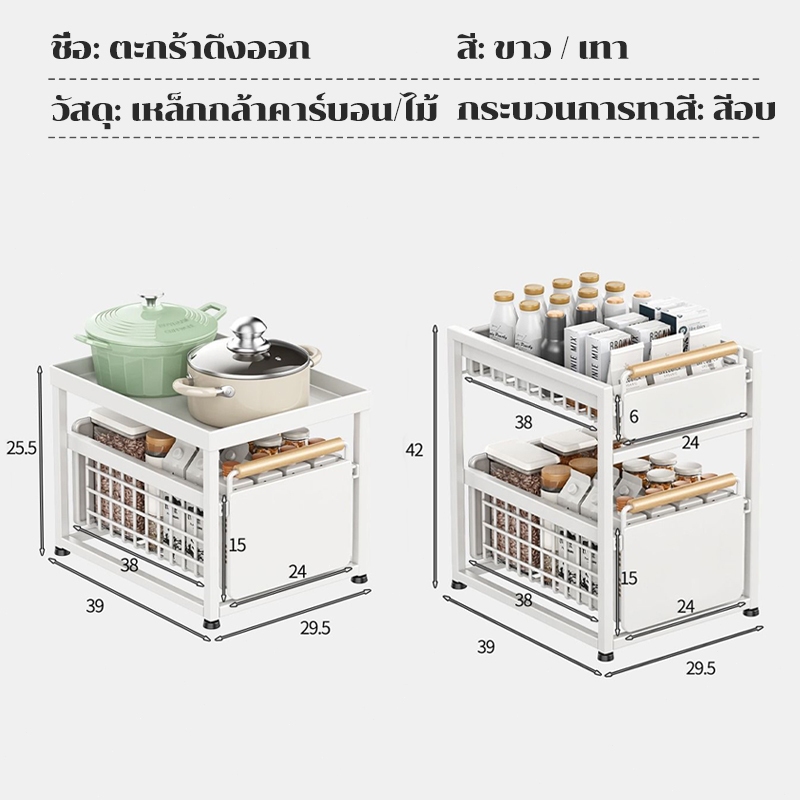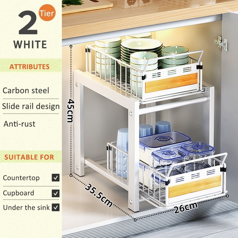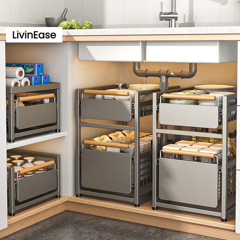 LivinEase ชั้นวางของใต้อ่างล้างจาน ไม้จับธรรมชาติ ไม่ต้องติดตั้ง ลิ้นชักเงียบ เก็บของครัว ห้องน้ำ ห้องนอน ประหยัดพื้นที่