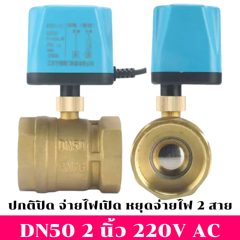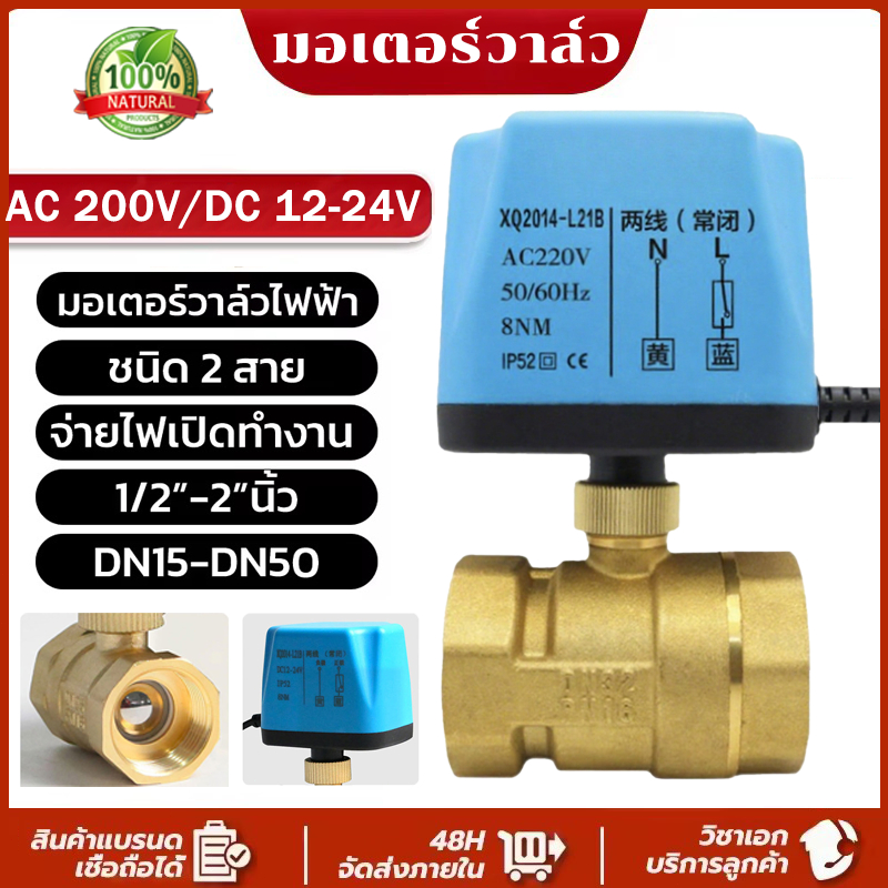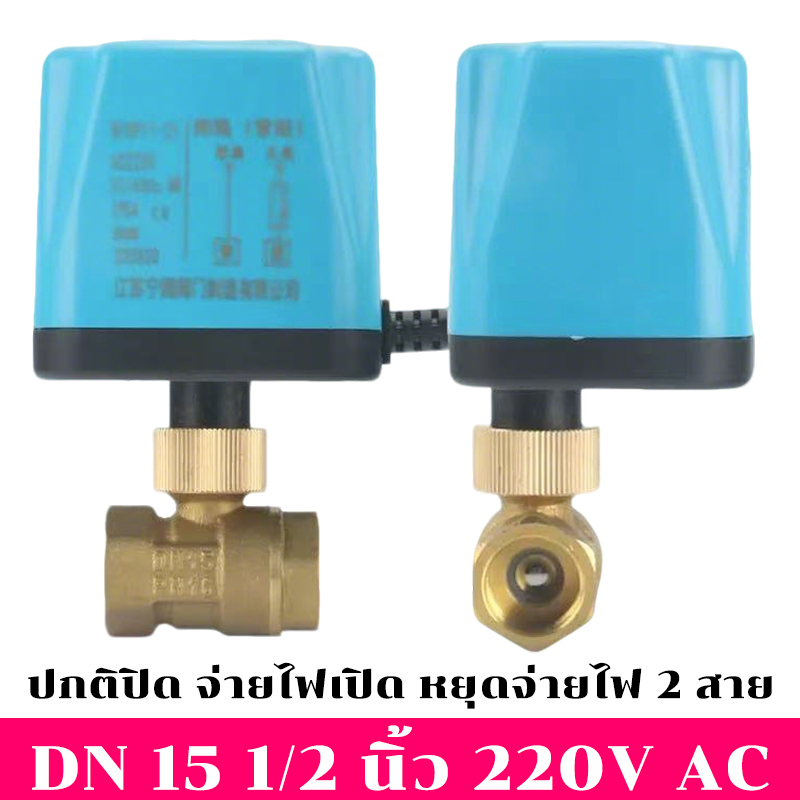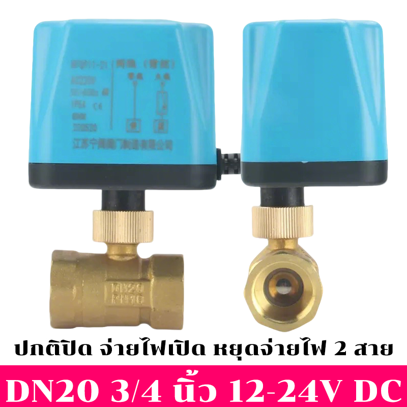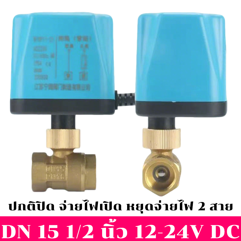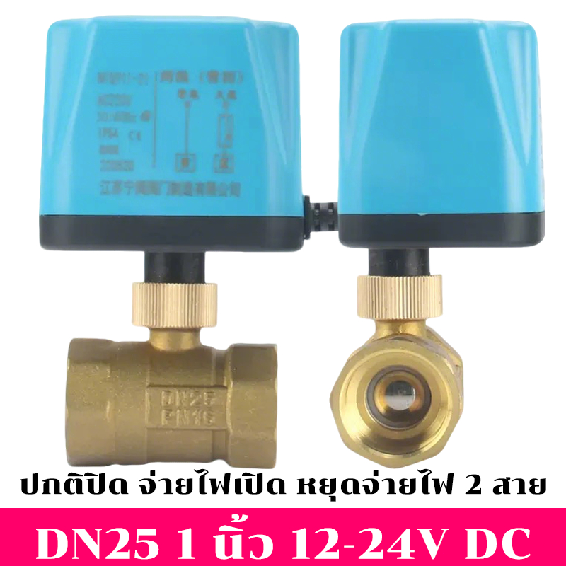 มอเตอร์วาล์ว บอลวาล์วไฟฟ้า 2 สาย 12V-24V DC 220V AC ทองเหลือง Ball Valve เปิดได้ไม่ต้องอาศัยแรงดันนำ้ ปกติปิด (NC)