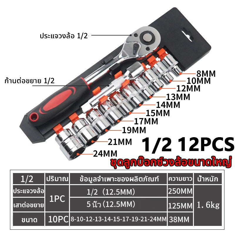 ชุดเครื่องมือ ประแจ ชุดบล็อก 12 ชิ้น ขนาด 1/2 1/4 (4หุน)CR-V แท้
