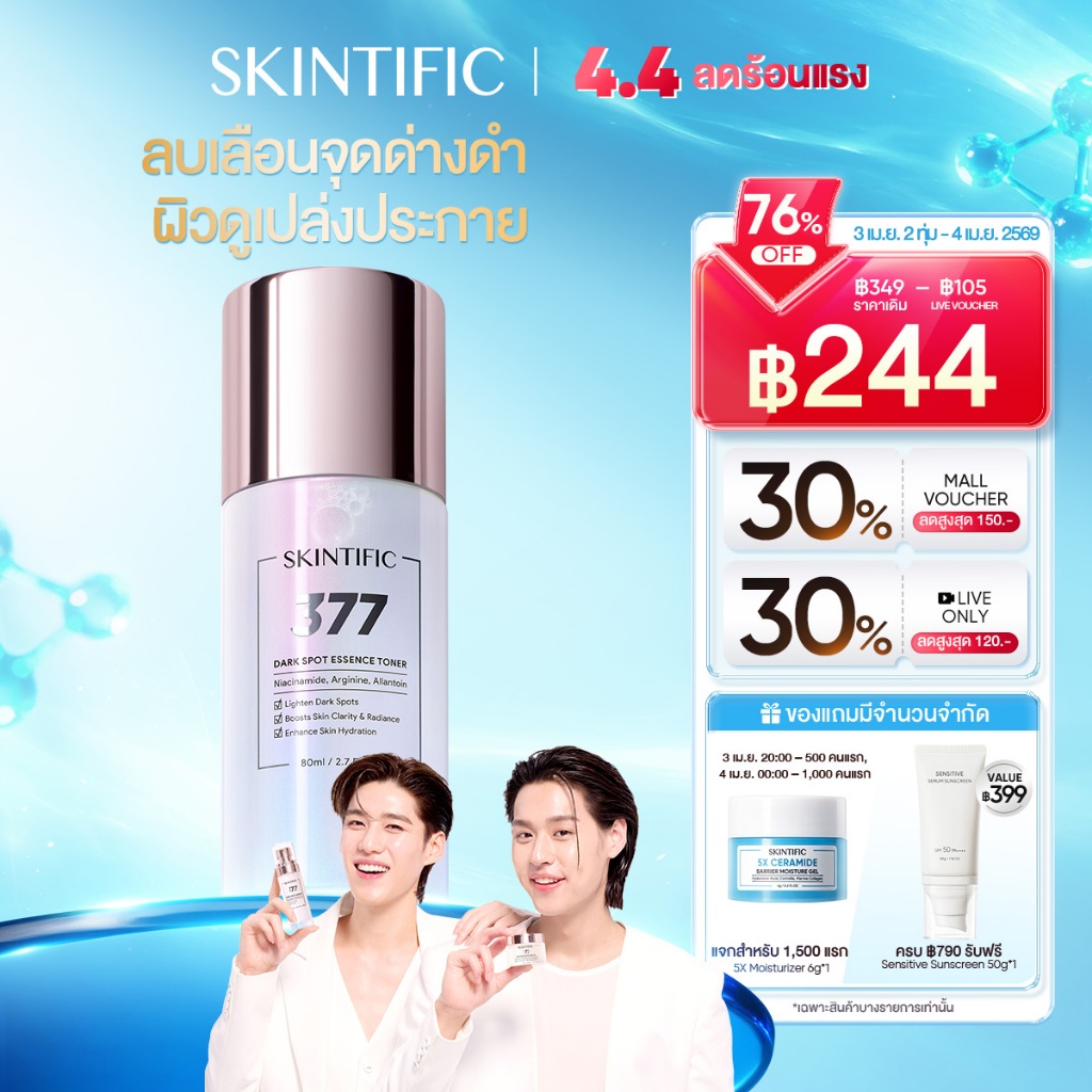 SKINTIFIC 377 Dark Spot Essence Toner ลบเลือนจุดด่างดำ สว่างขึ้น ตั้งแต่ 14 วันที่ใช้ โทนเ นอร์แพด โทนเนอร์ น้ำตบ