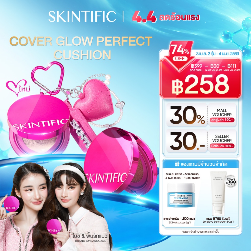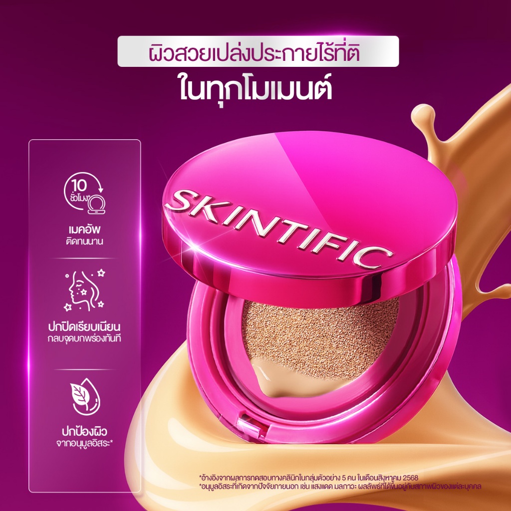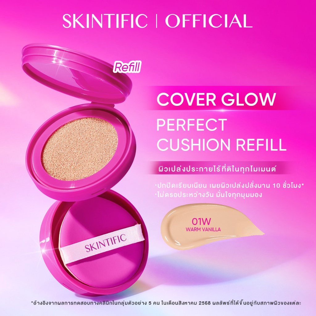SKINTIFIC Cover Glow Perfect Cushion โกลว์ 10 ชม กระจ่างใส ชุ่มชื้น เนียนไร้ที่ติ ไม่ออกซิ ไดซ์ คุชชั่น รองพื้น กันน้ำ