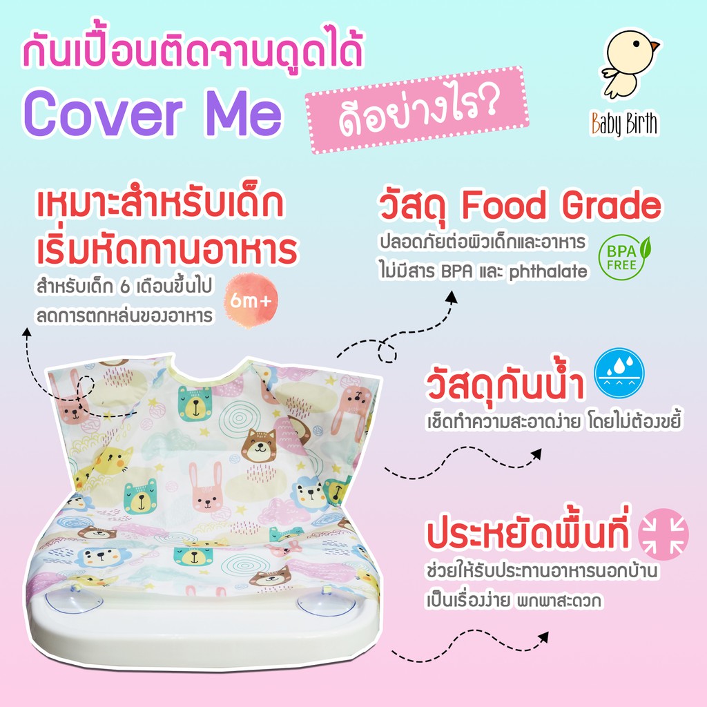BabyBirth รุ่น Cover me กันเปื้อนยอดฮิต เสื้อกันเปื้อน ใช้จานดูดได้ รองอาหารเด็ก bib blw