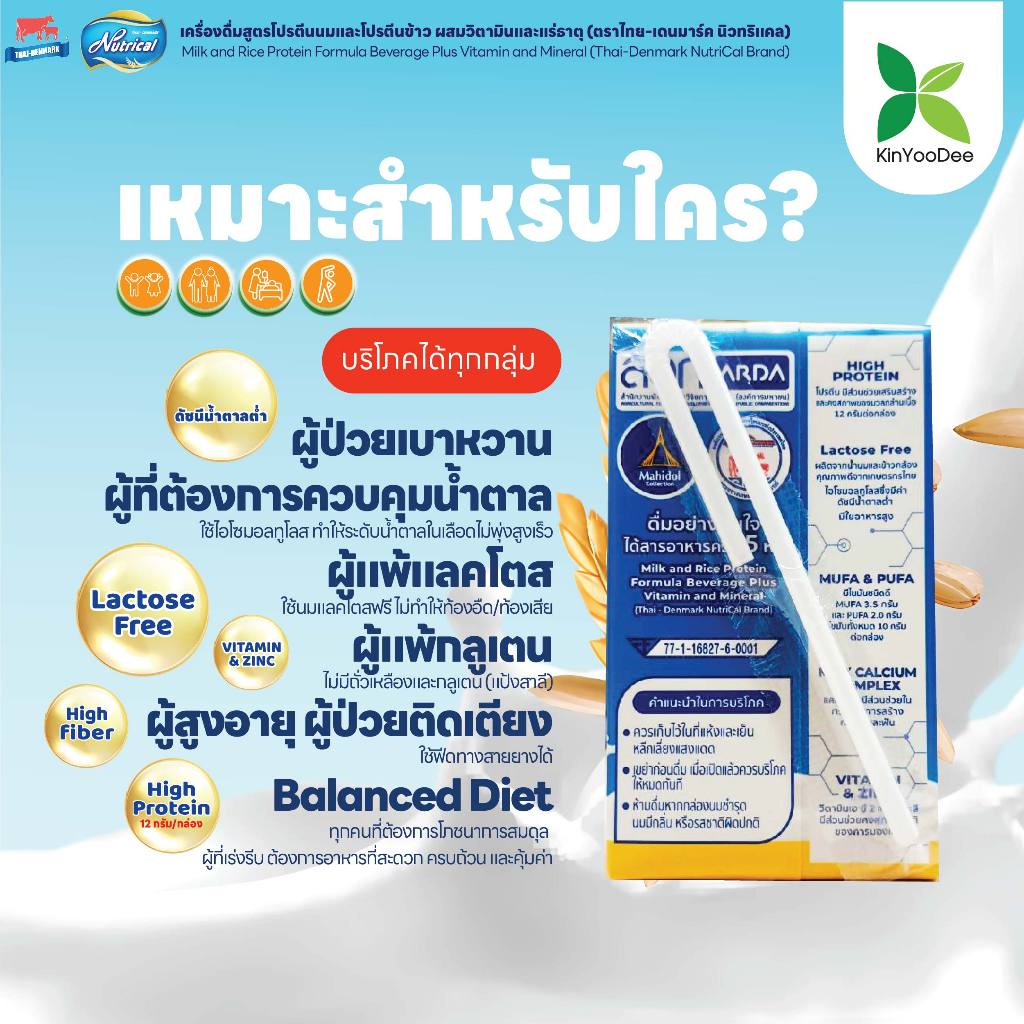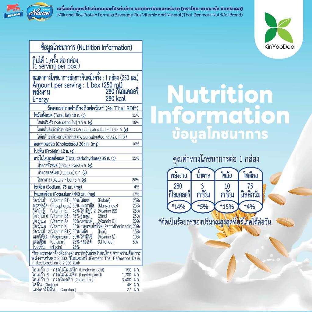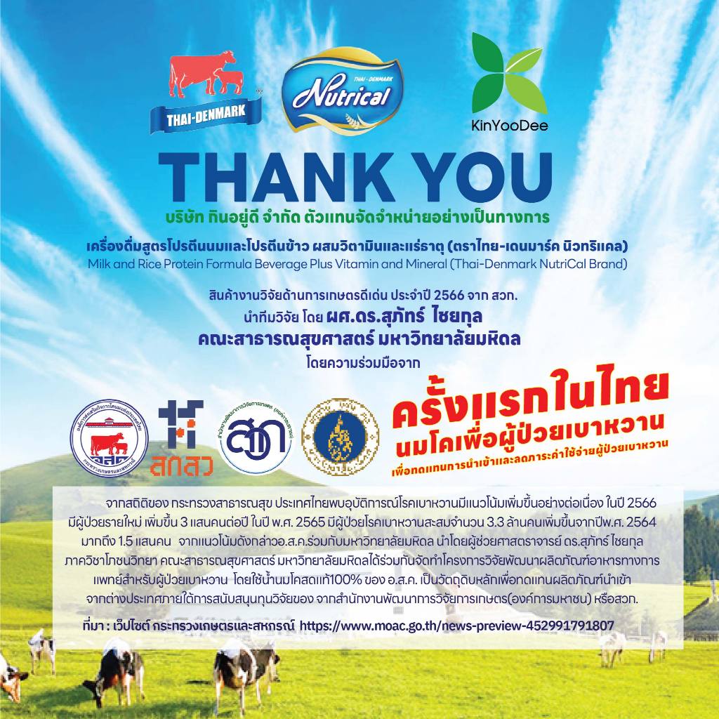 Thai-Denmark Nutrical เครื่องดื่มโปรตีนนมและข้าวกล้อง ให้พลังงานสูงและค่าดัชนีน้ำตาลต่ำ