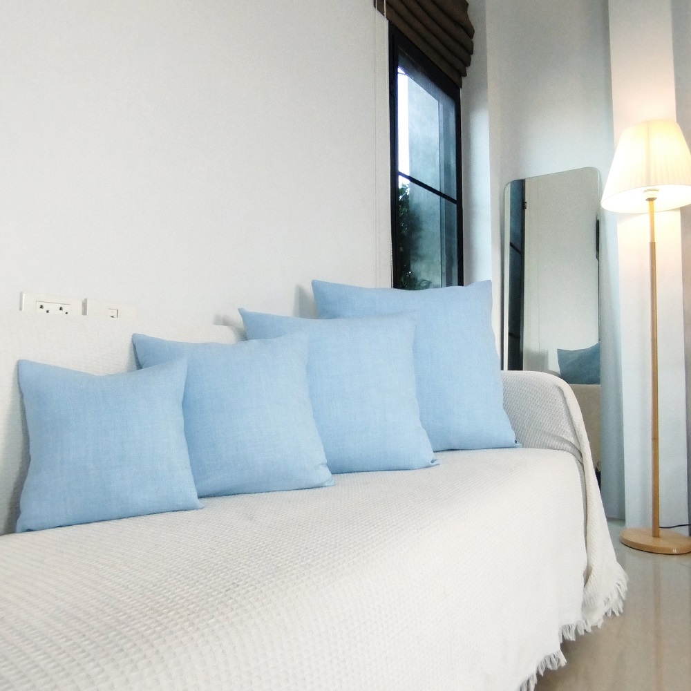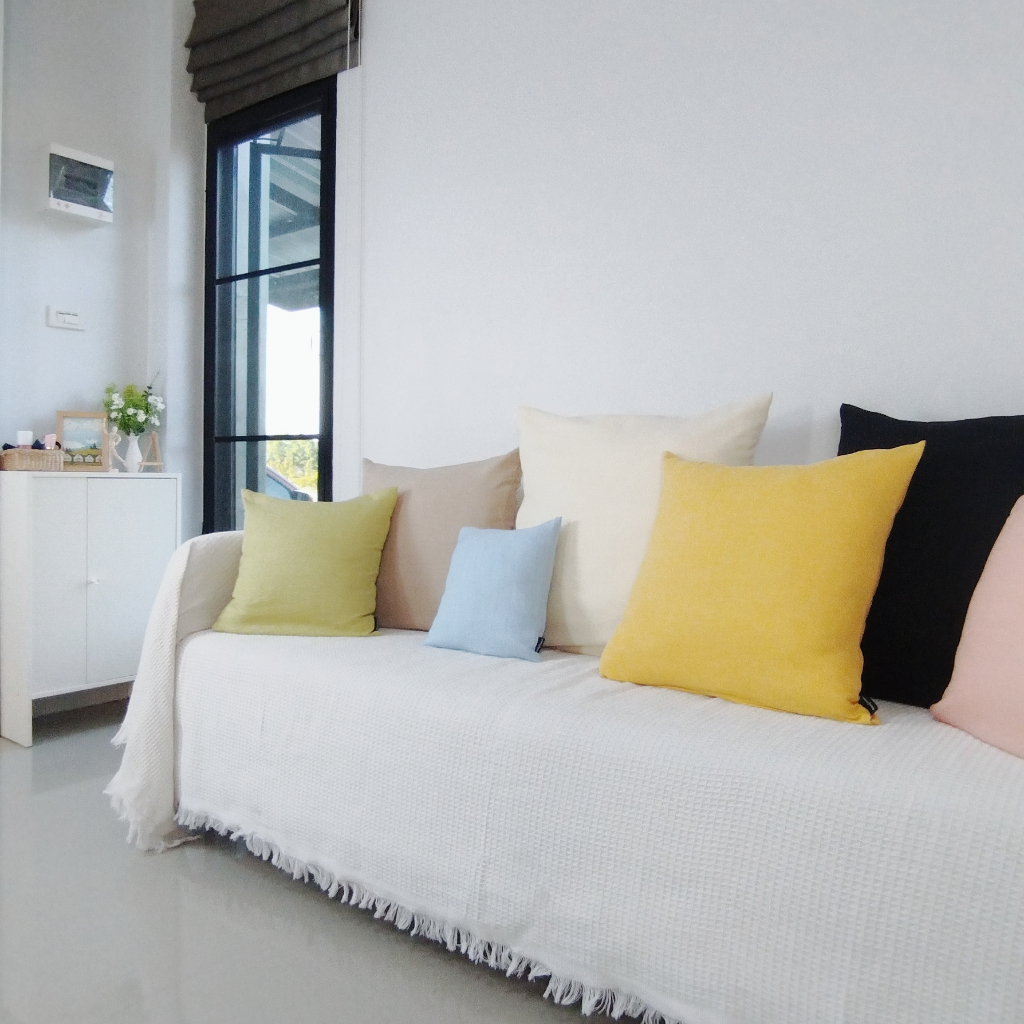 ปลอกหมอนอิง Homemade สีพื้น ผ้าลินิน ไม่มีซิป สไตล์มินิมอล ตกแต่งบ้าน ห้องนั่งเล่น