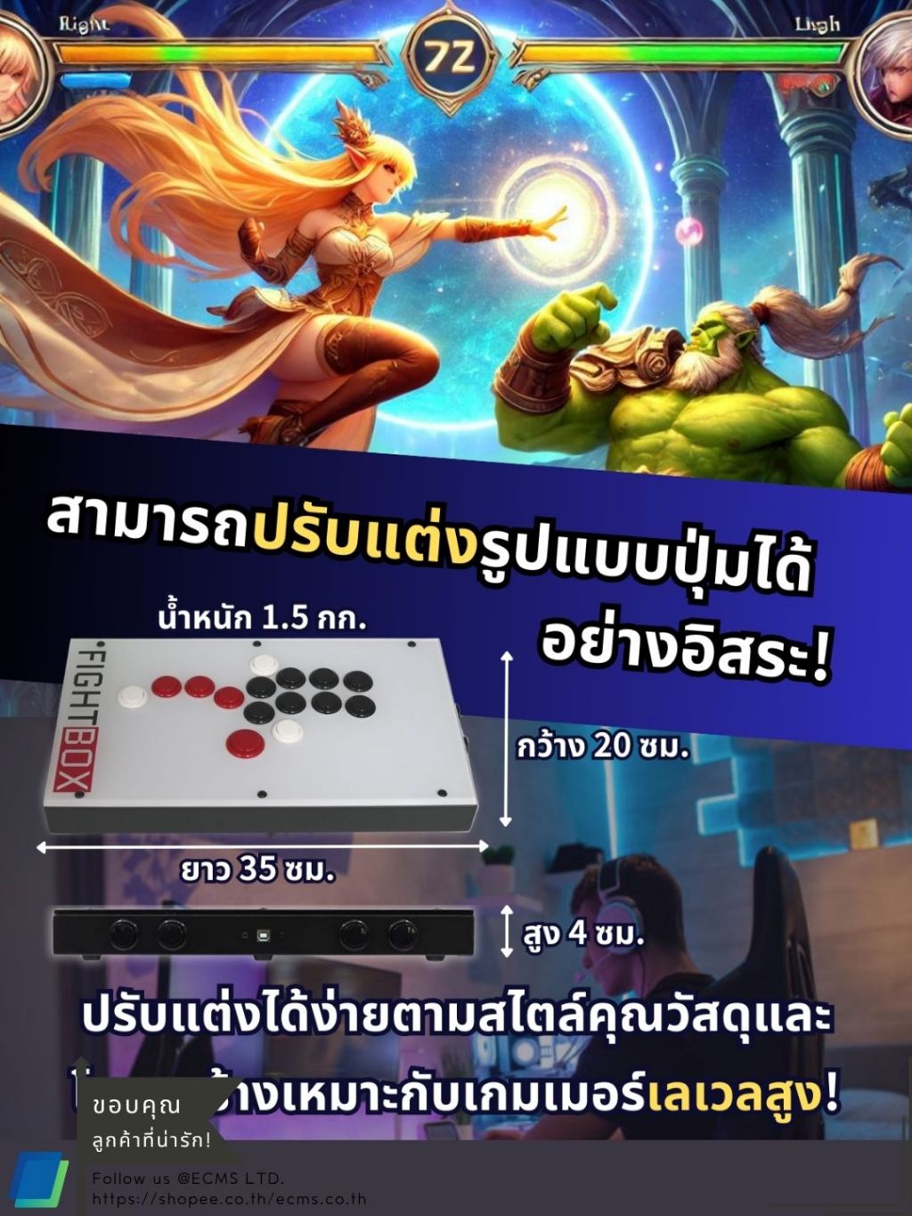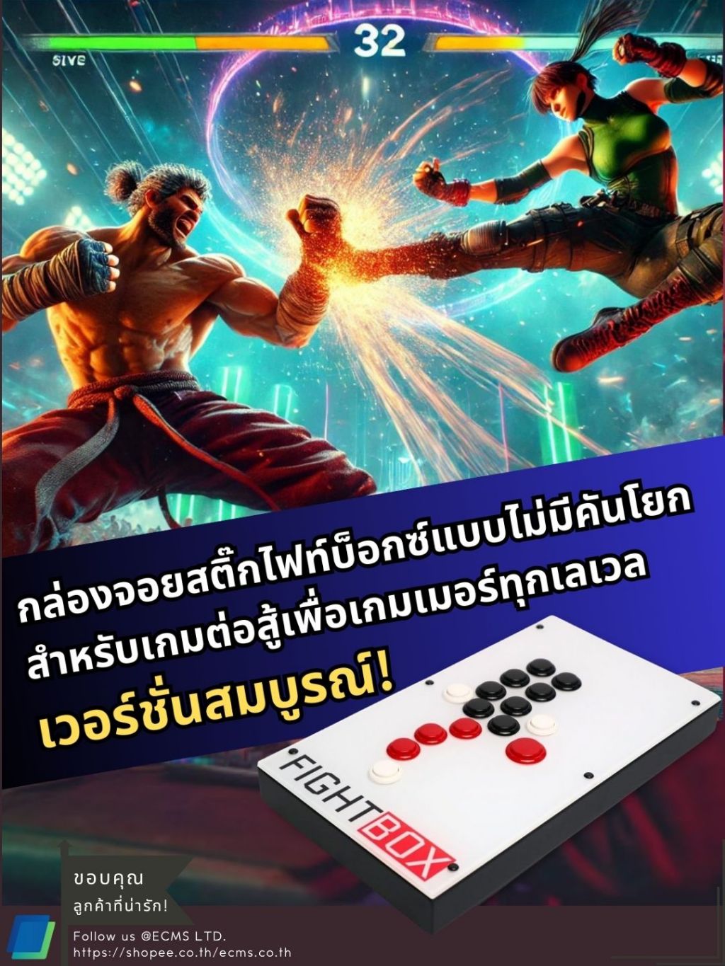 FightBox F10-PC จอยเกมไฟท์ติ้งแบบไม่มีคันโยก | Zero Delay | รองรับ PC/PS3/Switch | Street Fighter Arcade Controller
