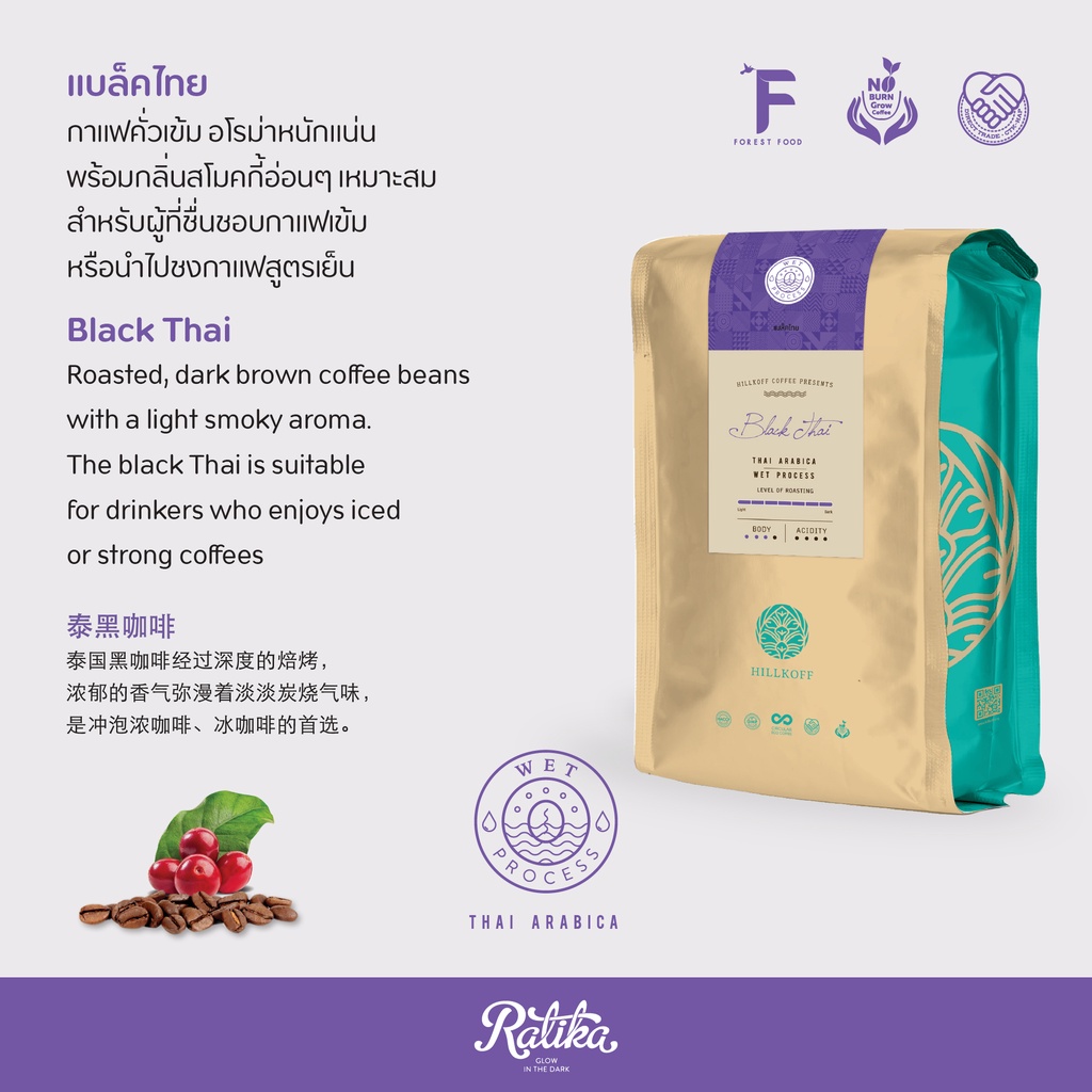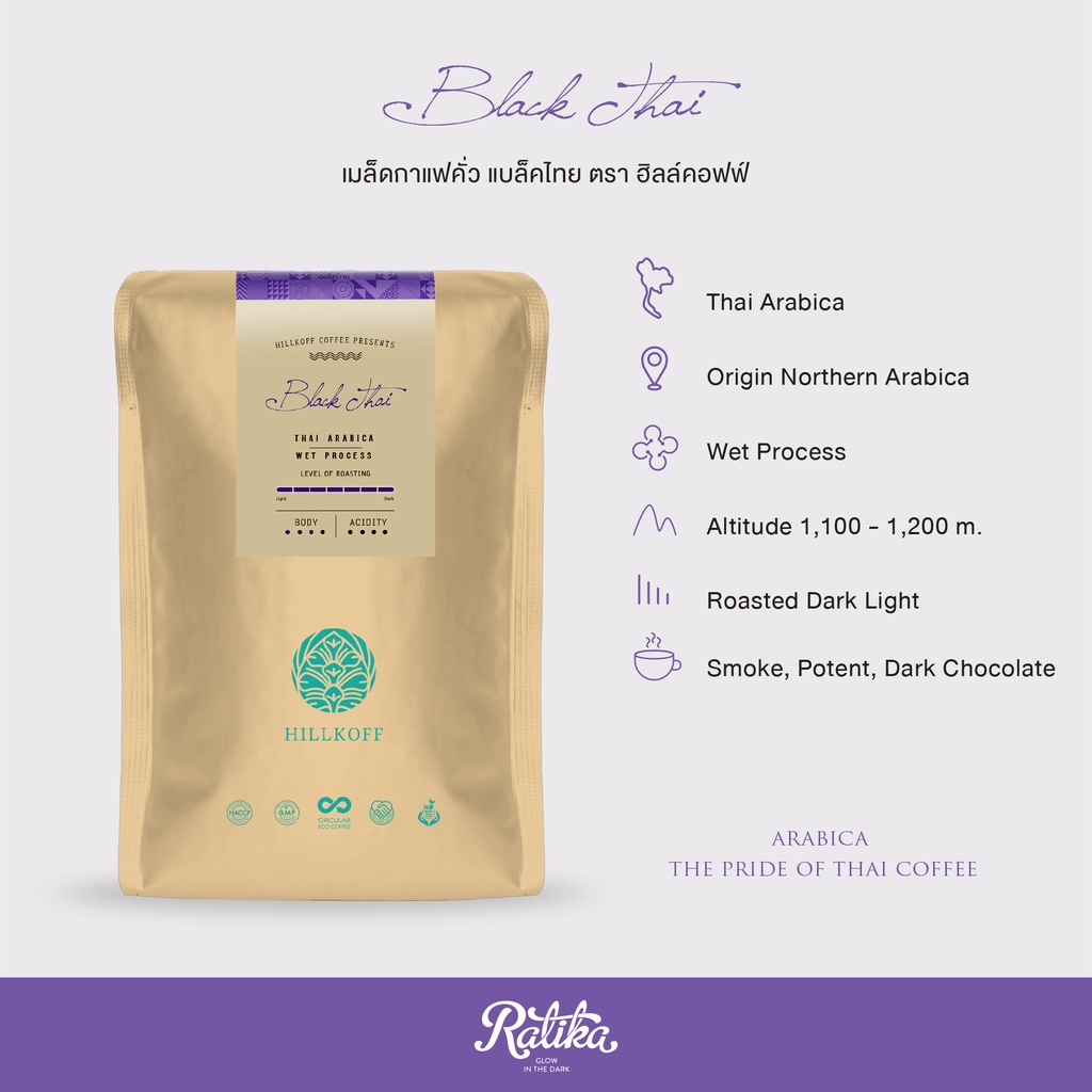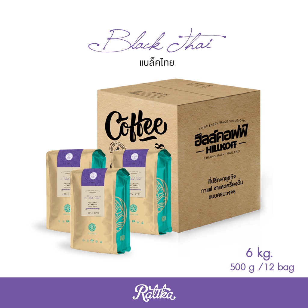 Ratika | ยิ่งซื้อ ยิ่งลด เมล็ดกาแฟคั่ว อราบิก้าแท้ 100 % คั่วเข้ม ตรา ฮิลล์คอฟฟ์ (Black Thai) 500 g 6 / 8 / 10 kg.