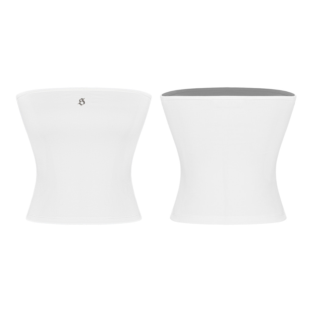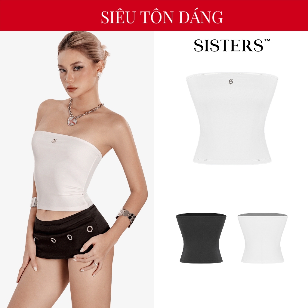 SISTERS เสื้อท่อนบนสตรีตัวยาวธรรมดาพร้อมโลโก้สแตนเลส Lulu กอดตัว โชว์ส่วนโค้งเย้ายวน แอสเตอร์ | เอสเอส-ที75
