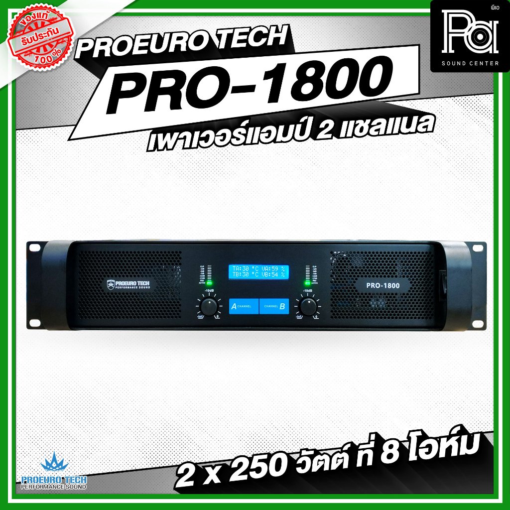 PROEUROTECH PRO-1800 เพาเวอร์แอมป์ PRO1800 2CH 180+180W. เพาเวอร์แอมป์ มีครอสโอเวอร์ในตัว SUB OUT