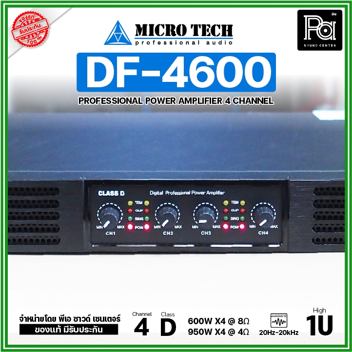 MICROTECH DF-4600 Poweramp 4CH เพาเวอร์แอมป์ 4 ชาแนล คลาส-D 600W ที่ 8โอห์ม / 950W ที่ 4โอห์ม