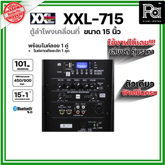 XXL POWER XXL-715 ตู้ลำโพงเคลื่อนที่ 15 นิ้ว พร้อมไมค์ลอย UHF มีบลูทูธ แบตเตอรี่ชาร์จในตัว