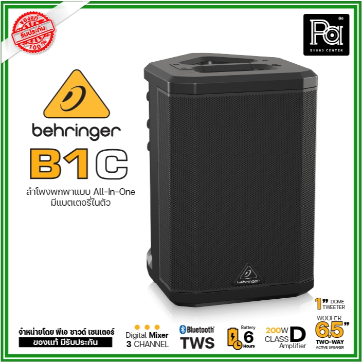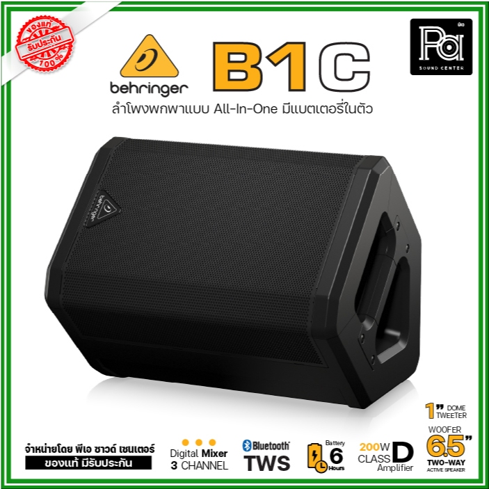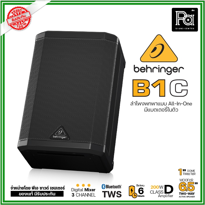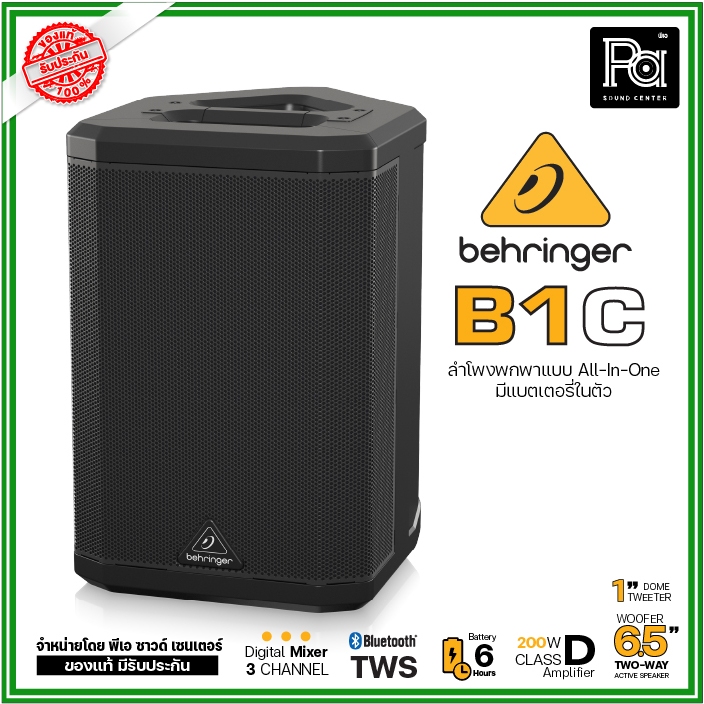 Behringer B1C ตู้ลำโพงมีแอมป์ในตัว 6.5 นิ้ว 200 วัตต์ All-in-One แบบพกพา พร้อมแบตเตอรีในตัว