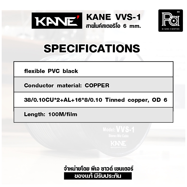 KANE VVS-1 สายไมค์ST สีดำ 6 mm สายสัญญาณ สายไมค์ ***แบ่งขายเป็นเมตร 1-5-10-15-20 ***