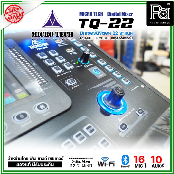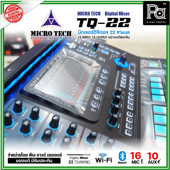 MICRO TECH TQ-22 มิกเซอร์ดิจิตอล 22 ชาแนล 16 อินพุต 8 Aux จอทัชสกรีน 6.1 นิ้ว Wi-Fi ในตัว