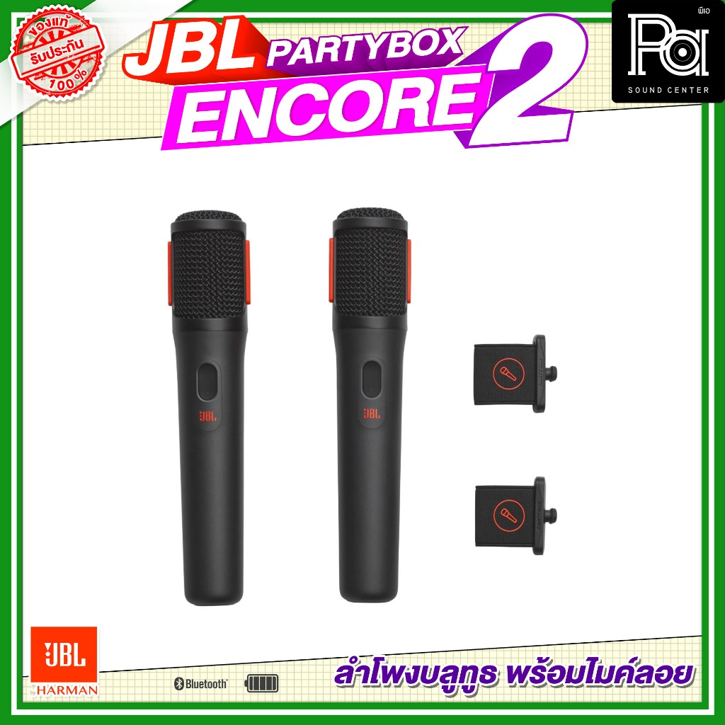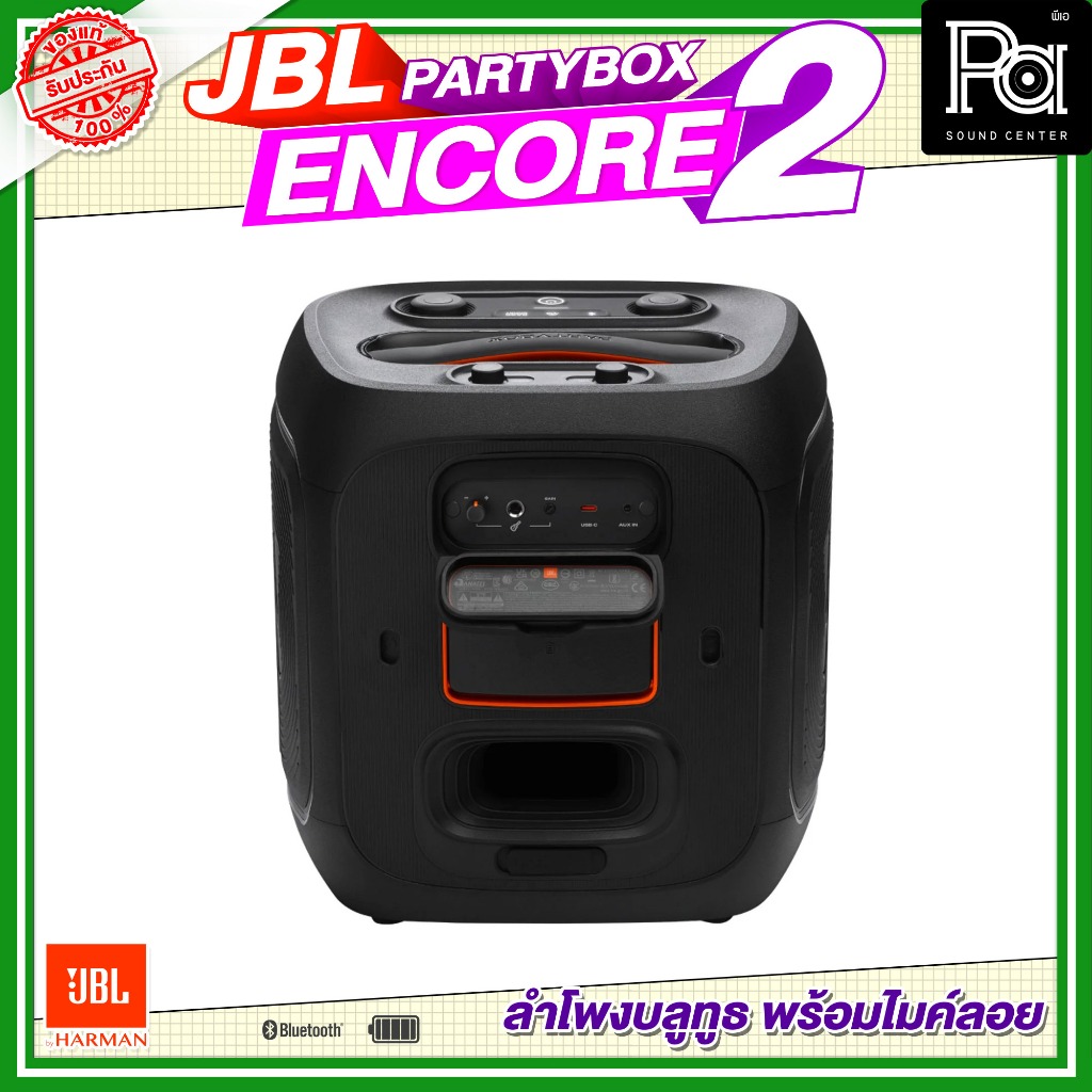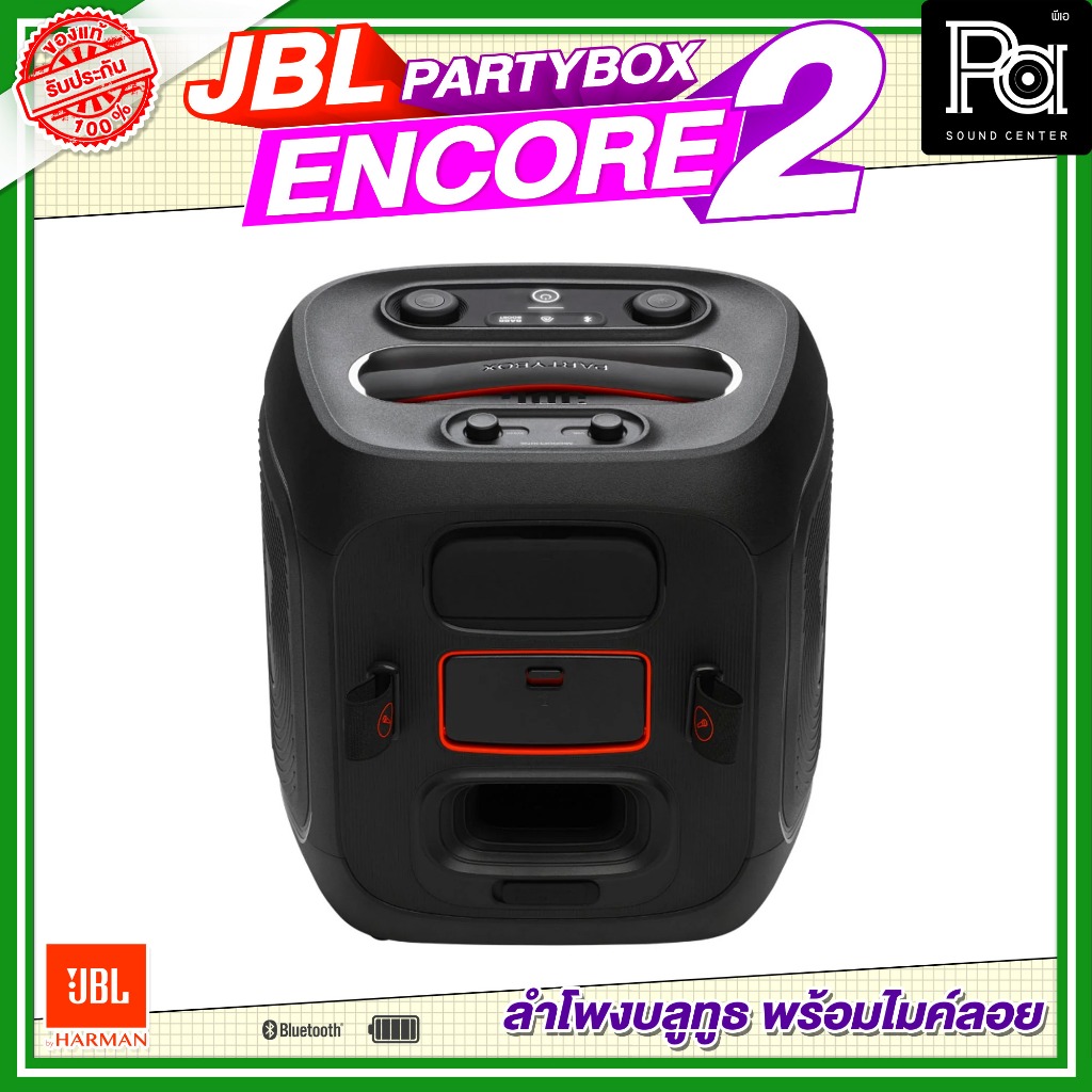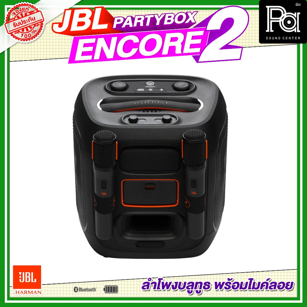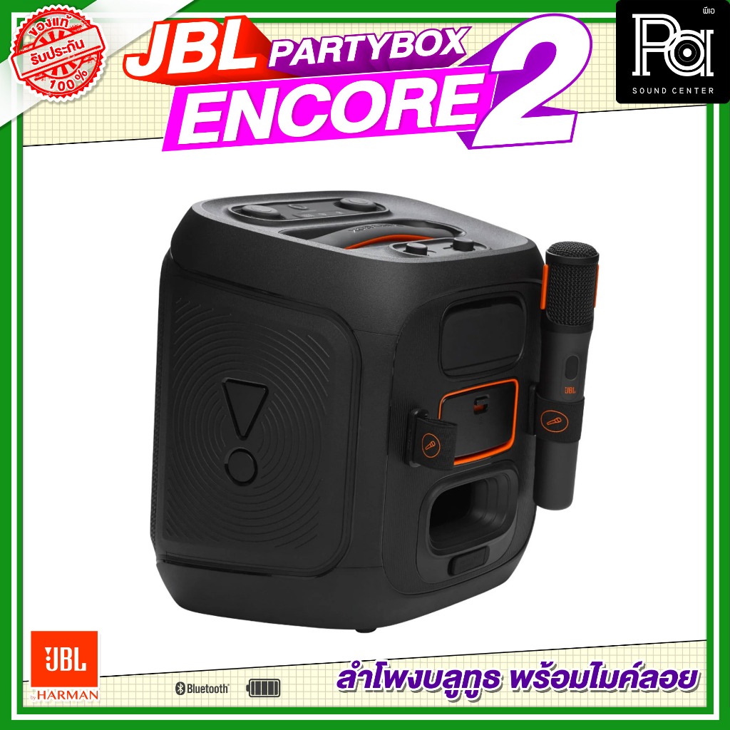 JBL PartyBox Encore 2 2 Mic New ลำโพงบลูทูธ 5.25นิ้ว 100W พร้อมไมค์ลอยคู่ ลำโพงพกพา มีแบตเตอรี่ในตัว